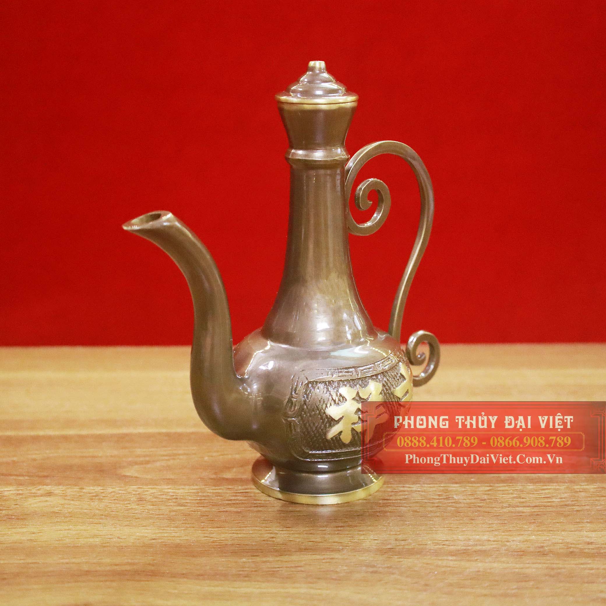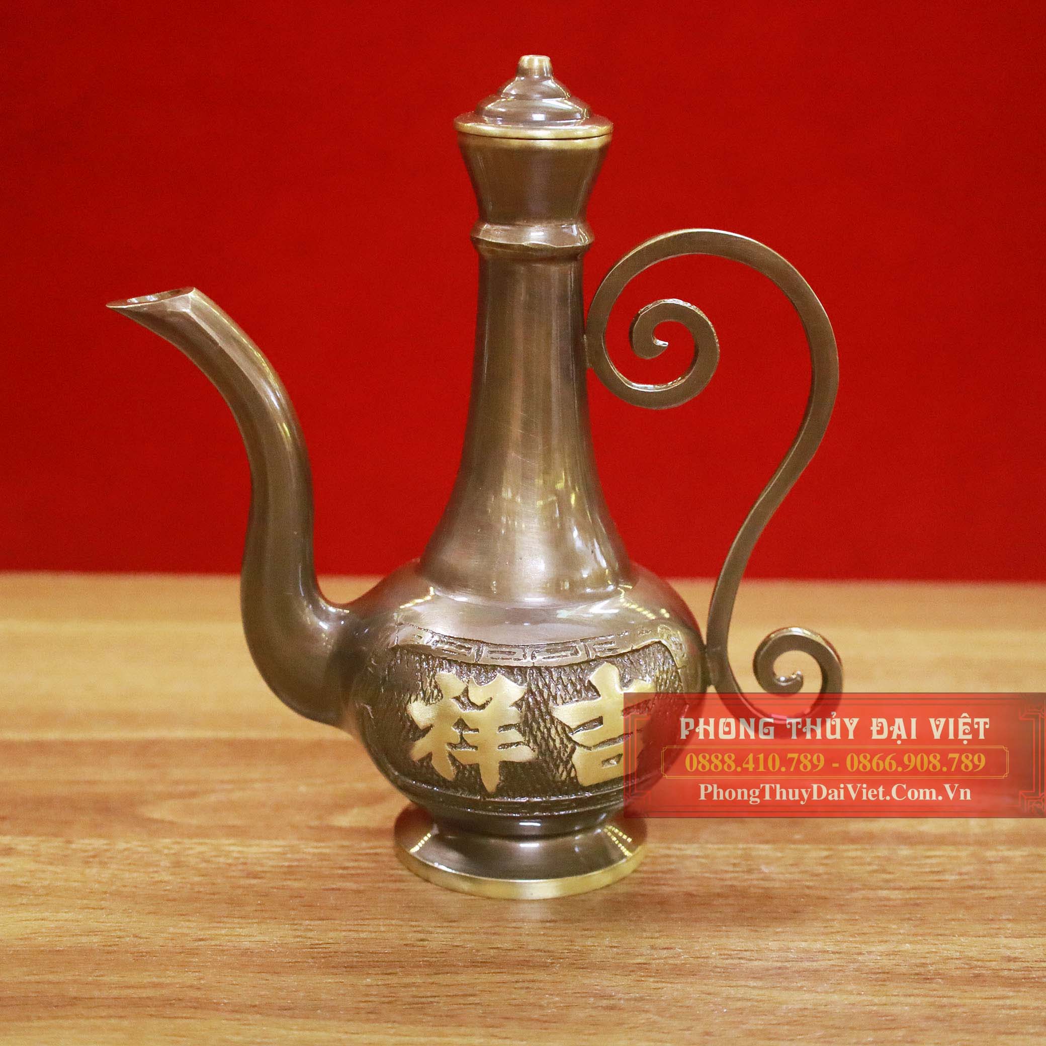 Ấm phú quý rượu có hình dáng bình rượu cổ xưa của vua chúa, dáng bình thanh thoát, tay. Mặt trước và mặt sau của chiếc ấm khắc hai chữ: Phú quý và Cát tường mang ý nghĩa giàu sang và tốt lành.