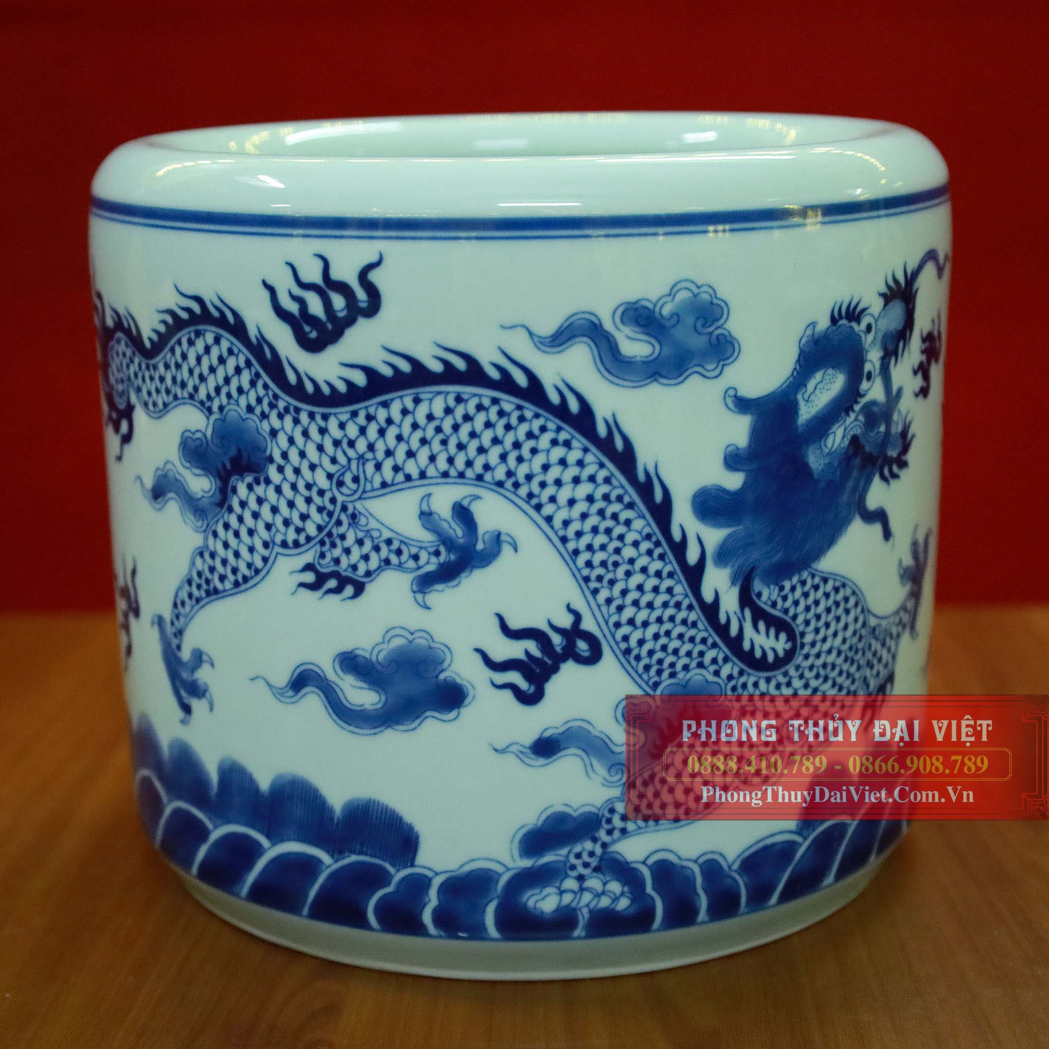 Phần miệng bát hương được tạo dáng tròn trịa, mềm mại. Phần thân là họa tiết song long chầu mặt nguyệt với đường nét cực kỳ uyển chuyển, tỉ mỉ mang đến một hình ảnh rất sống động, chân thật.
