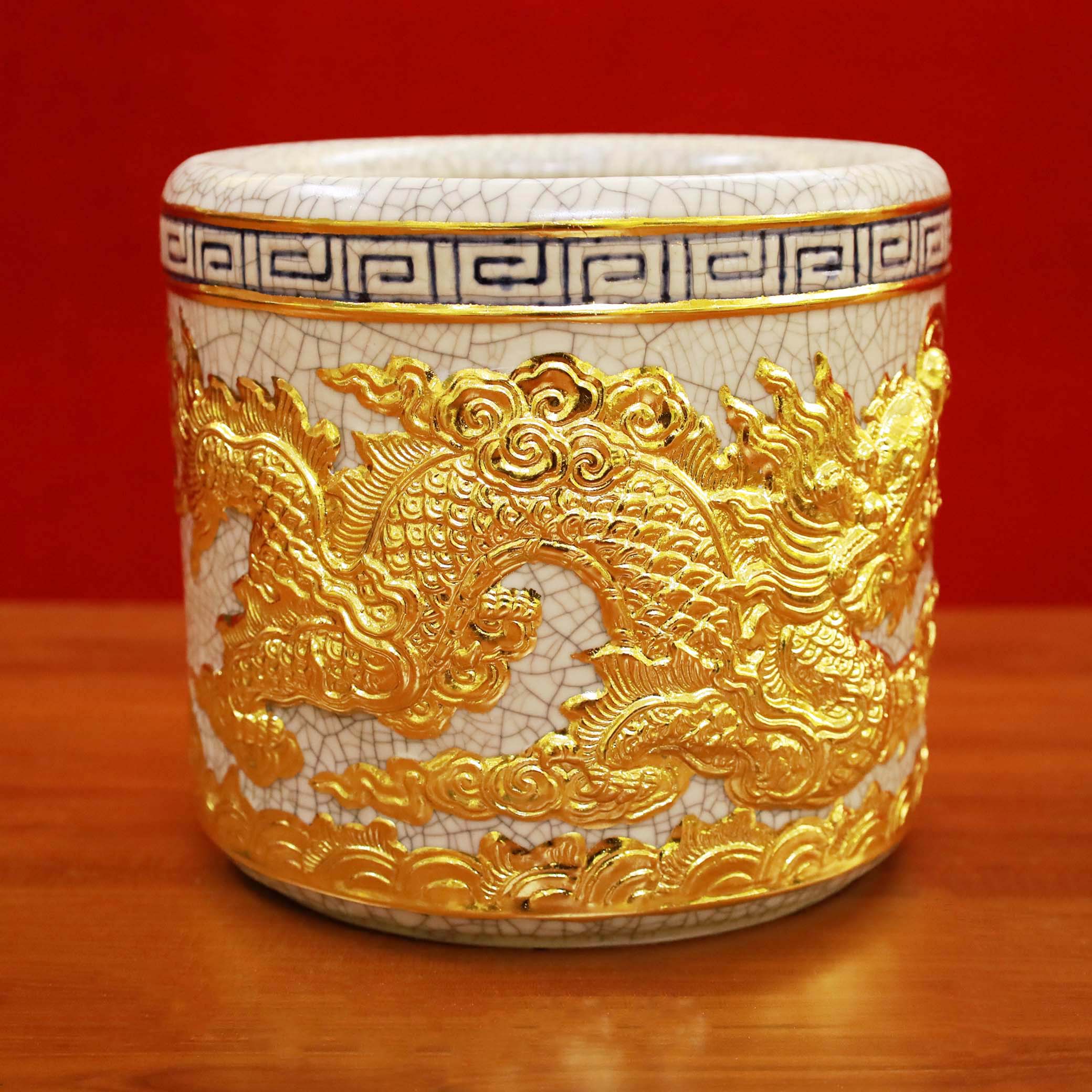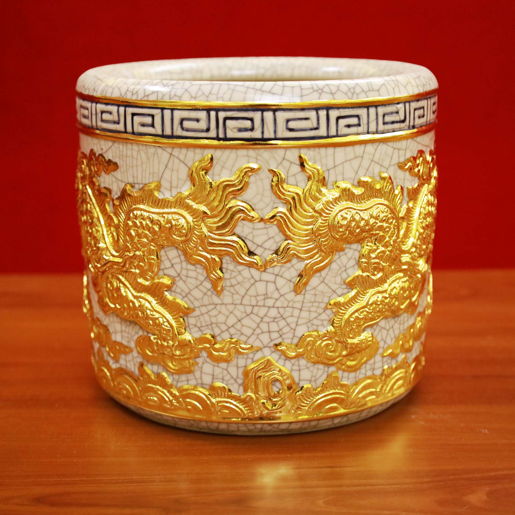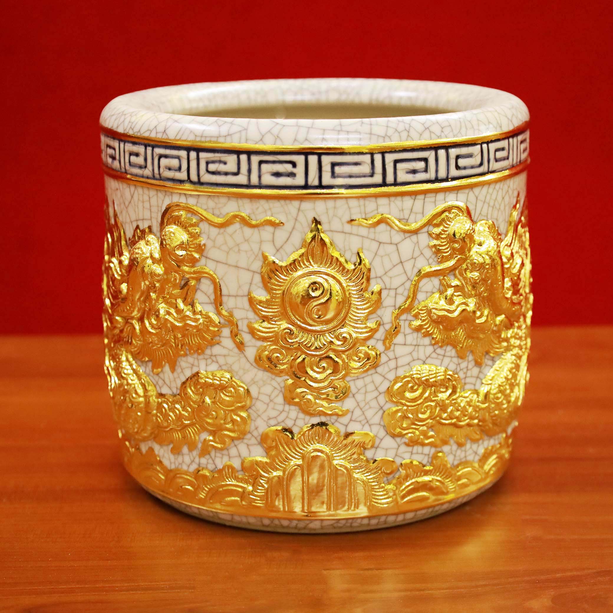 Bát hương rồng men rạn đắp nổi dát vàng 24k cao cấp