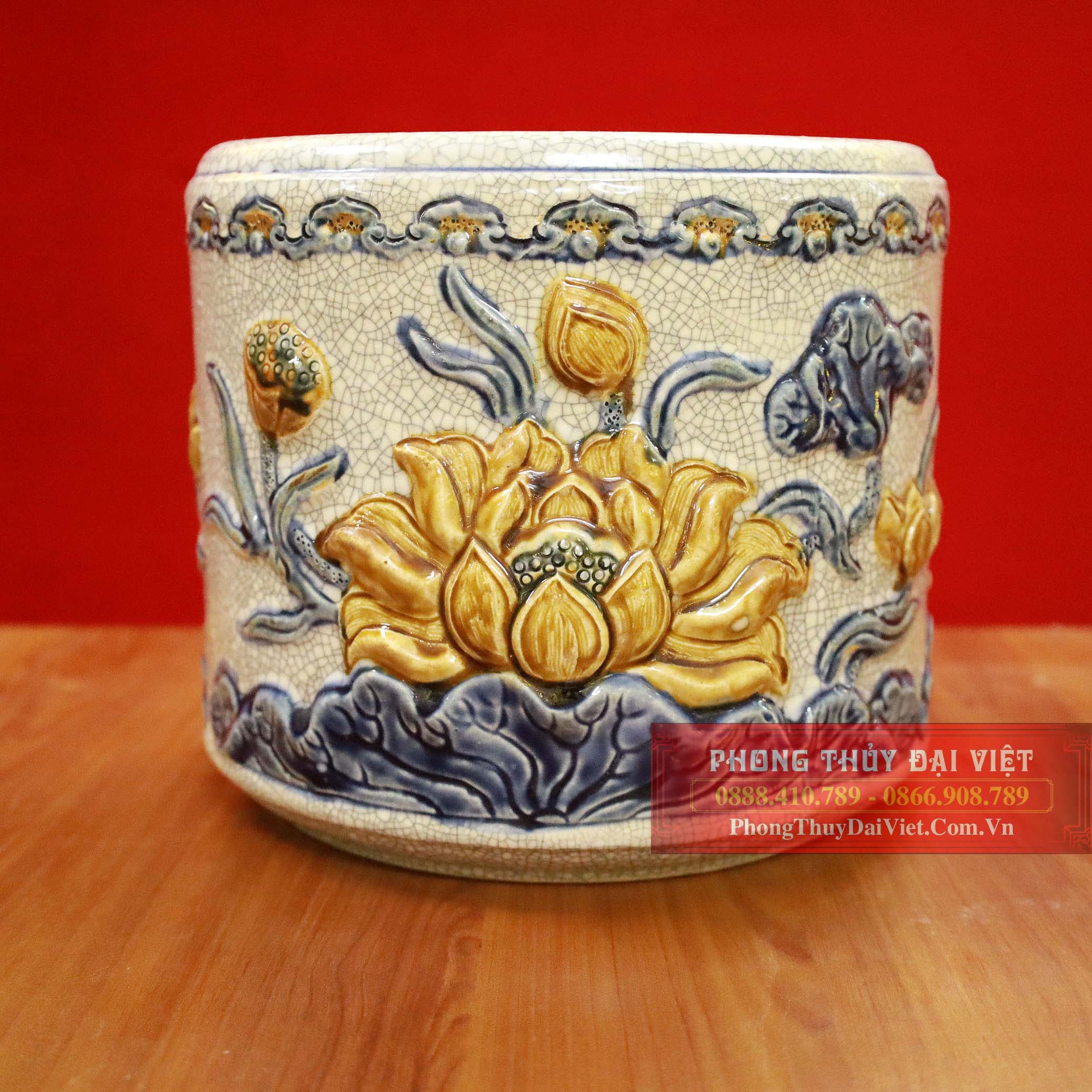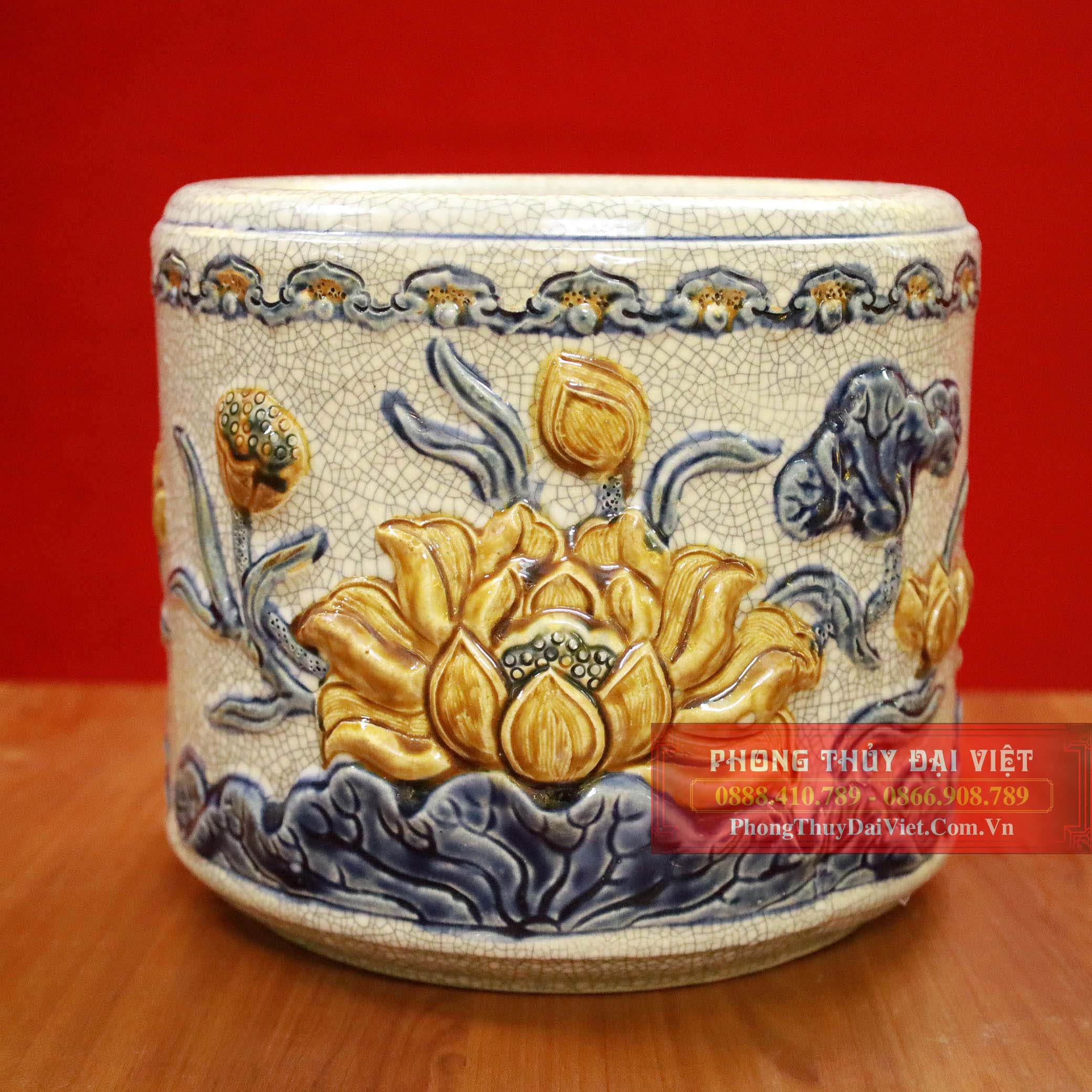 Bát hương sen men rạn đắp nổi cao cấp Bát Tràng