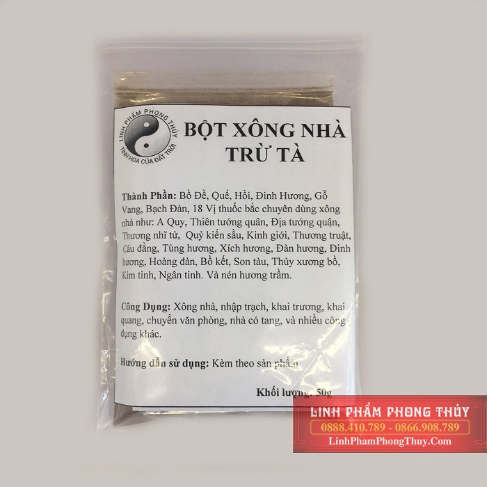 Nếu bạn chưa biết về vật phẩm này thì đây là mẫu sản phẩm được dùng để xua đuổi những vận khí xấu, tẩy uế những điều không may, trừ tà đồng thời mang lại những mong muốn, vượng khí , may mắn và nhiều tài lộc cho gia chủ. Bột này được tinh chế từ các loại thảo dược cực kì gần gũi trong đời sống nhân dân: các loại thảo dược, linh mộc gỗ quý và dược hương khác nhau.