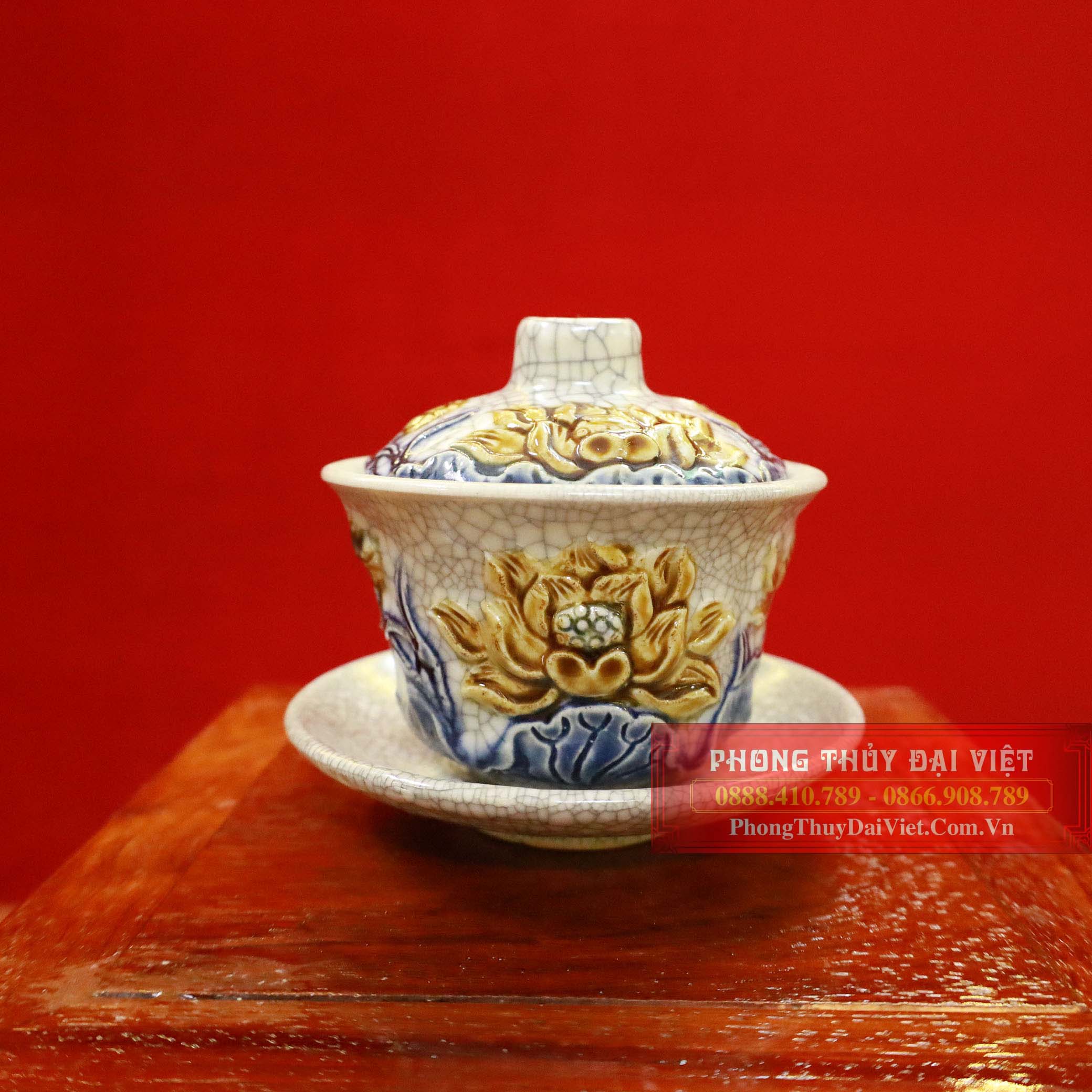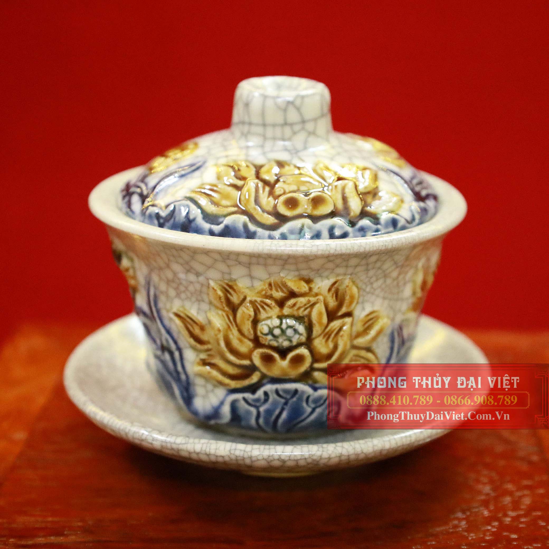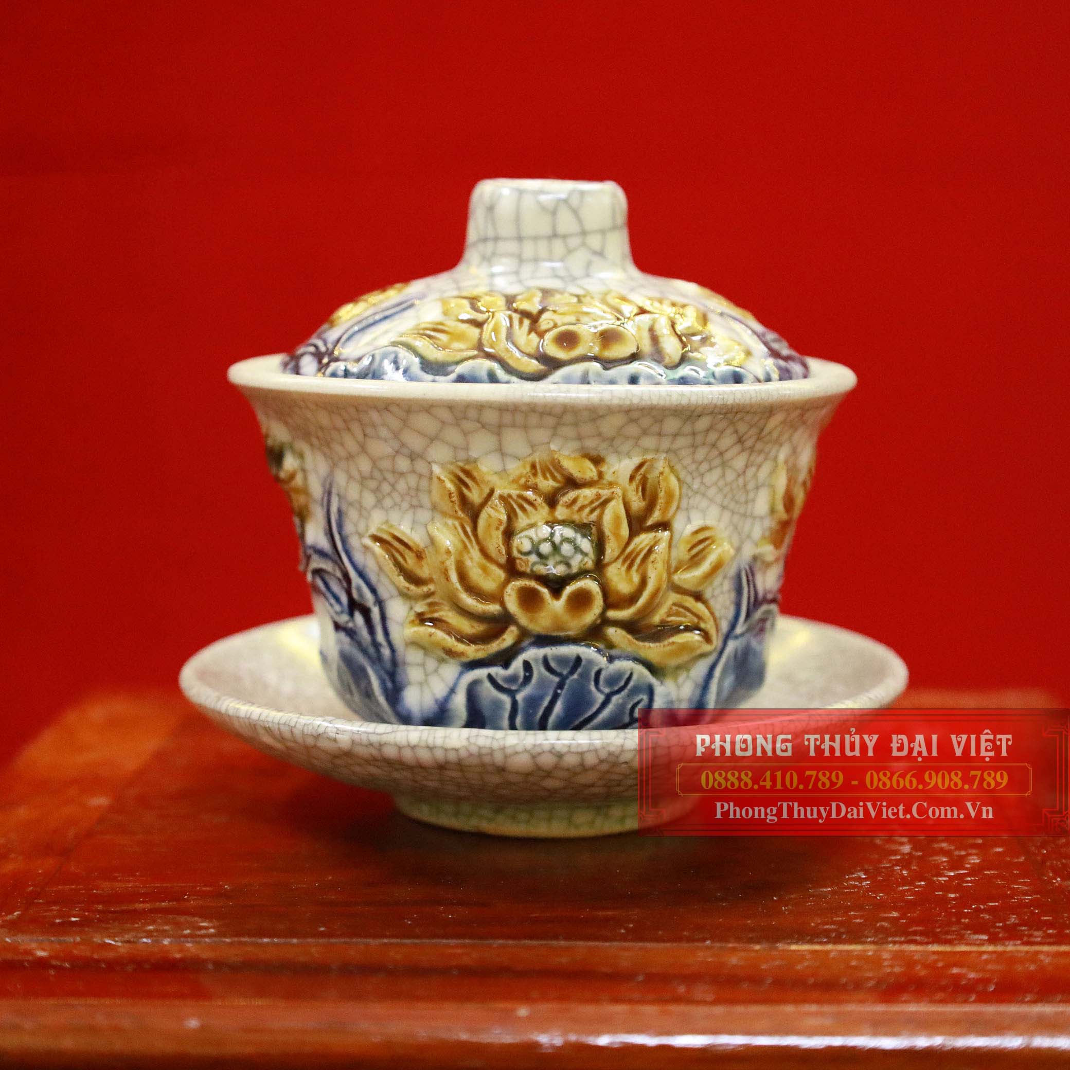 Bát sâm men rạn đắp nổi Bát Tràng cao cấp