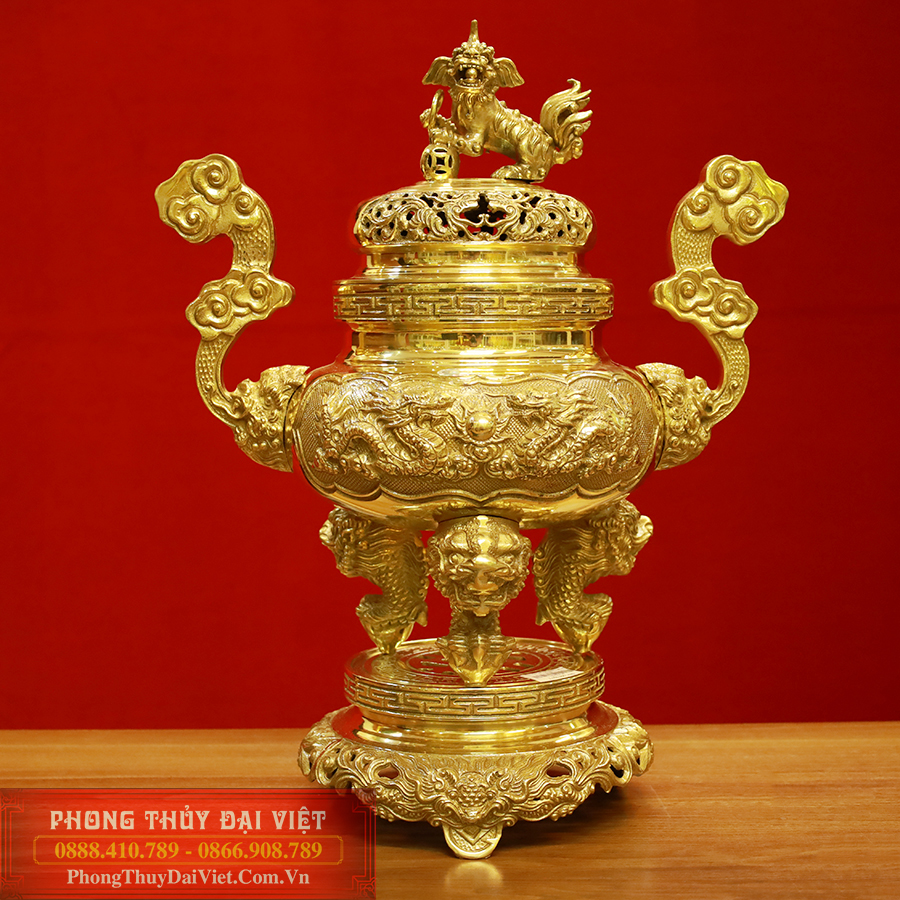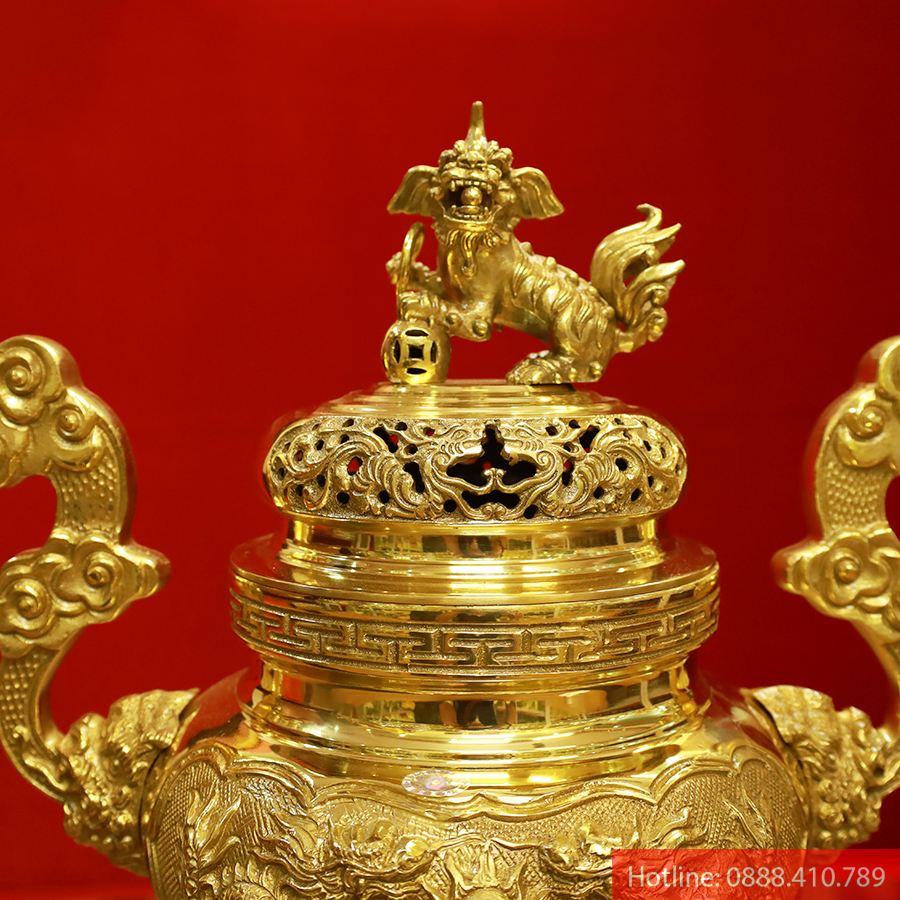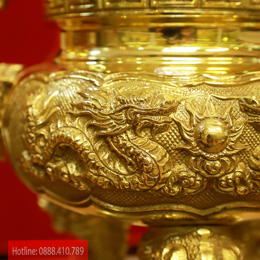 Đỉnh đồng được chạm khắc từ nguyên liệu đồng vàng thanh khiết, chế tác bằng công nghệ đúc chân không hiện đại, bề mặt tạo bóng bằng công nghệ sơn tĩnh điện, đem lại sự sáng bóng đẹp mắt, độ bền cao.