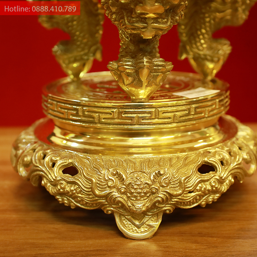 Bộ đỉnh rồng đồng nguyên chất vàng bóng