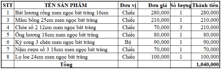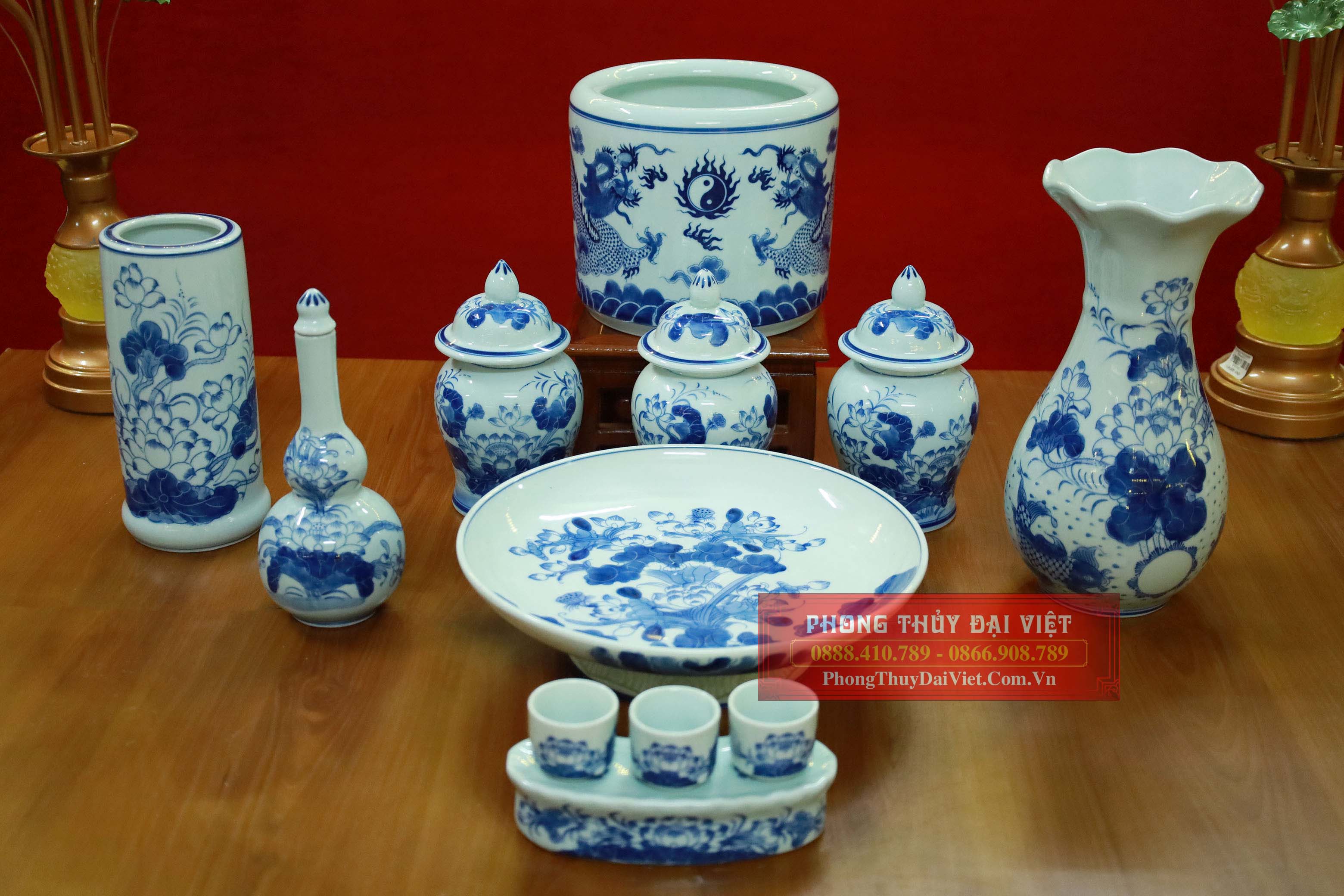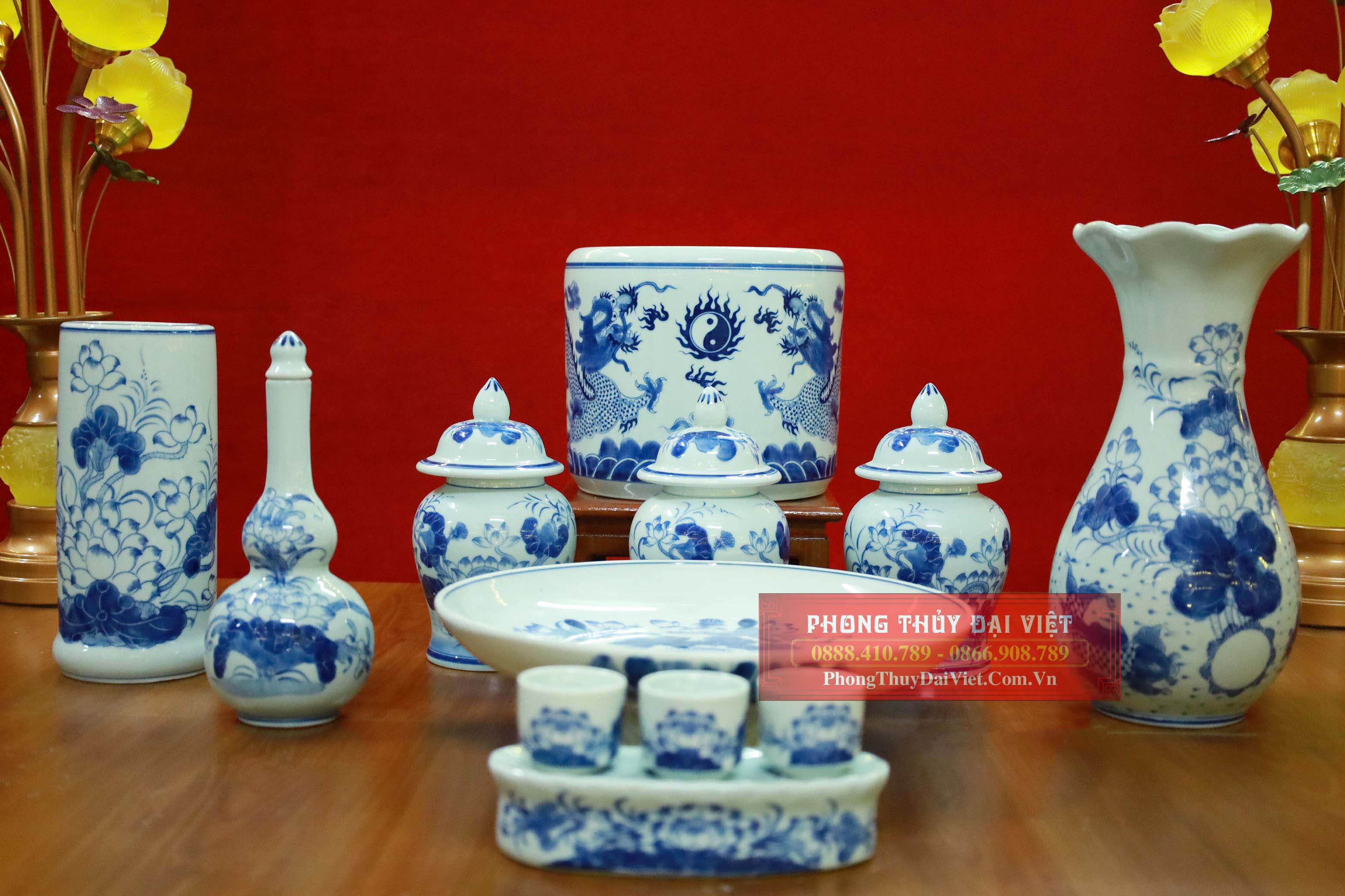 Bộ đồ thờ men ngọc Bát Tràng- ban gia tiên và thần linh - MN04