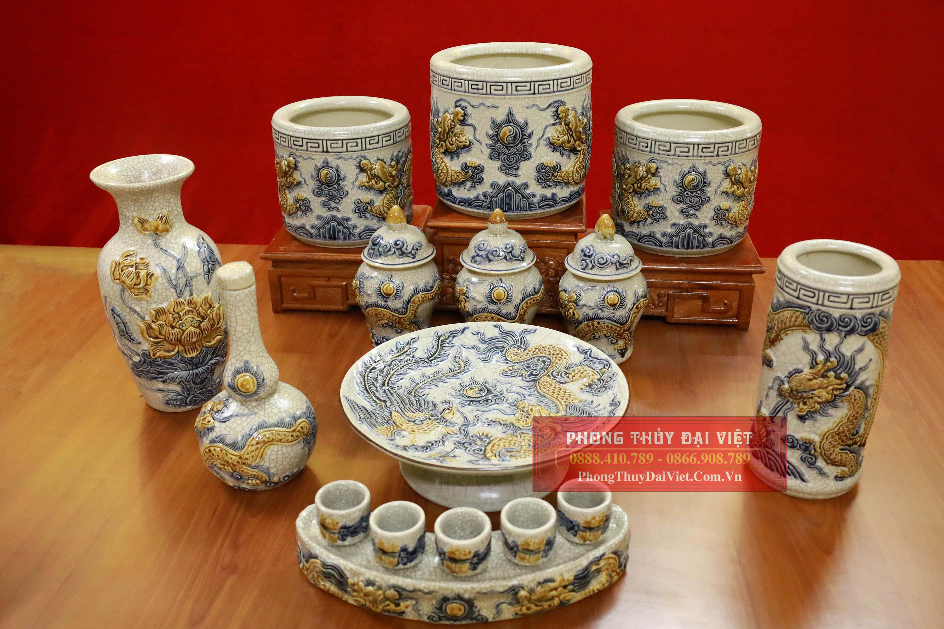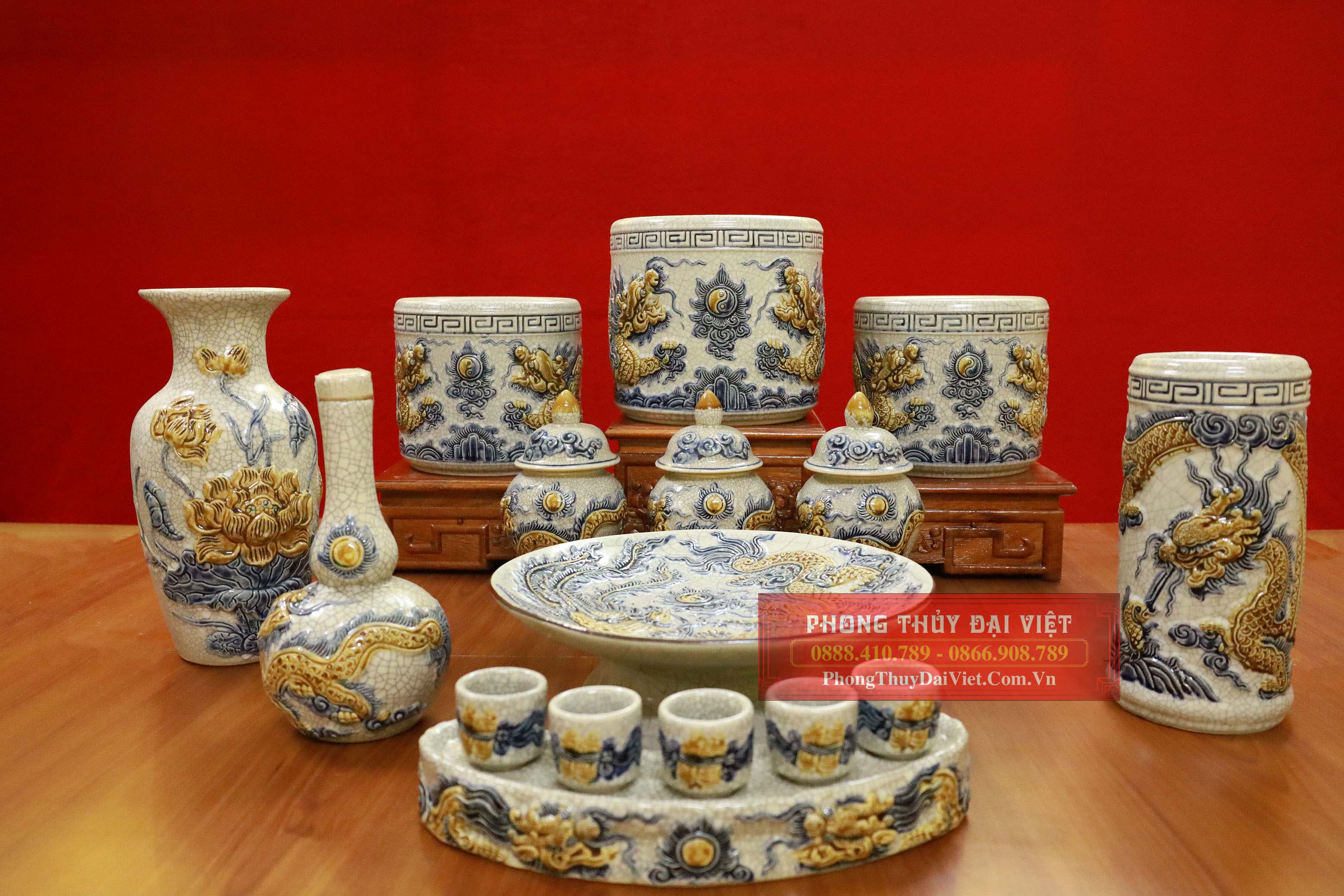 Bộ đồ thờ là biểu hiện tâm linh trên bàn thờ. Đó là nơi mỗi khi thắp hương tưởng niệm, cầu cúng hướng tới tổ tiên, các vị thần linh hay gửi lòng thành kính vào cõi vô hình. Đặc biệt là bộ đồ thờ gốm men rạn đắp nổi càng làm cho không gian thờ cúng thêm linh thiêng, trang trọng