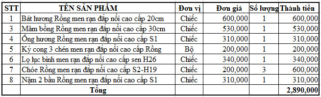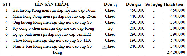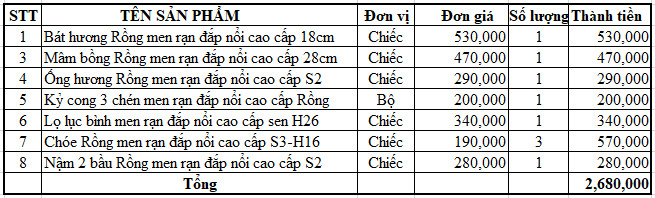 + Kích thước: tuỳ theo kích thước của mỗi bàn thờ mà gia chủ có thể chọn các bộ sau: