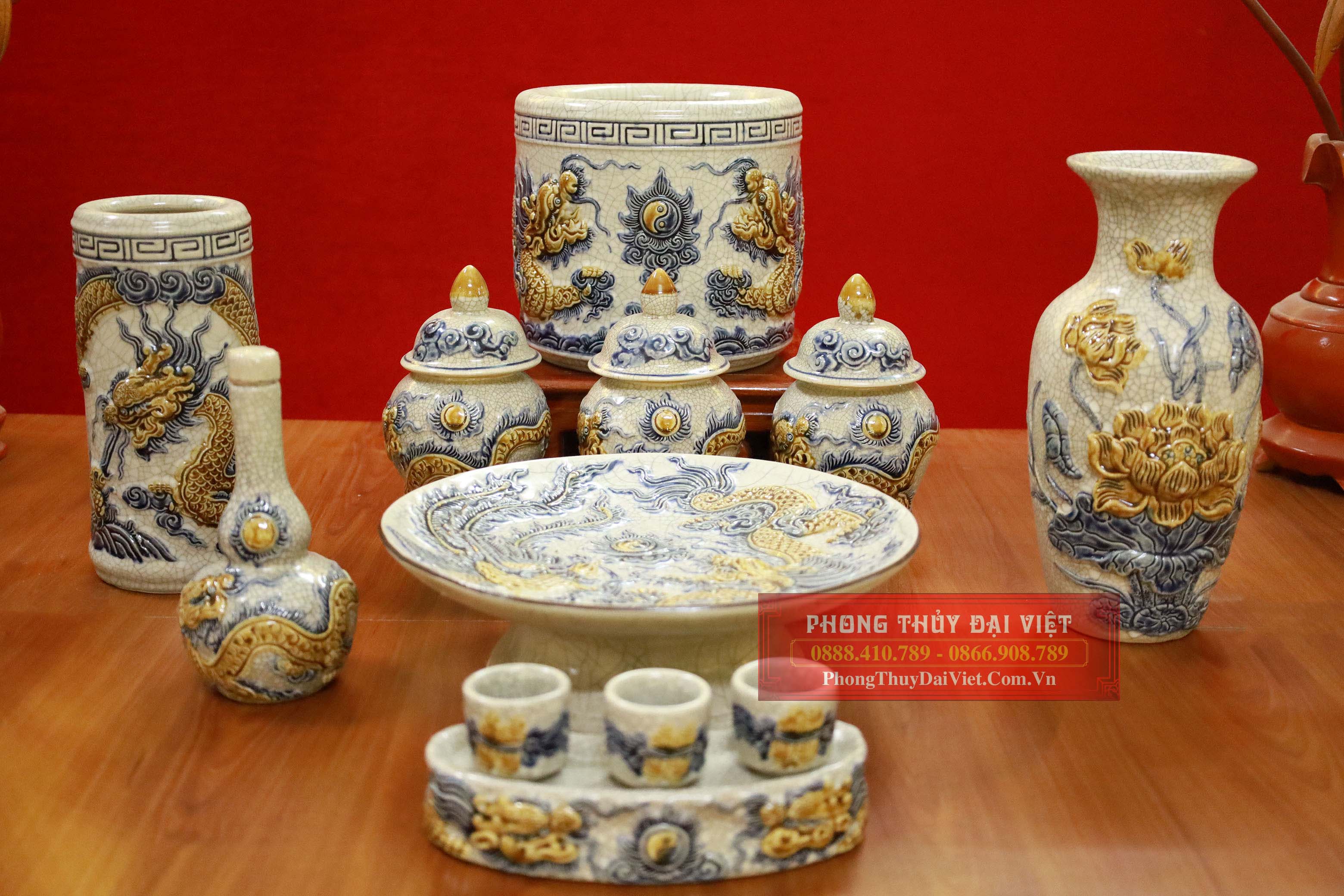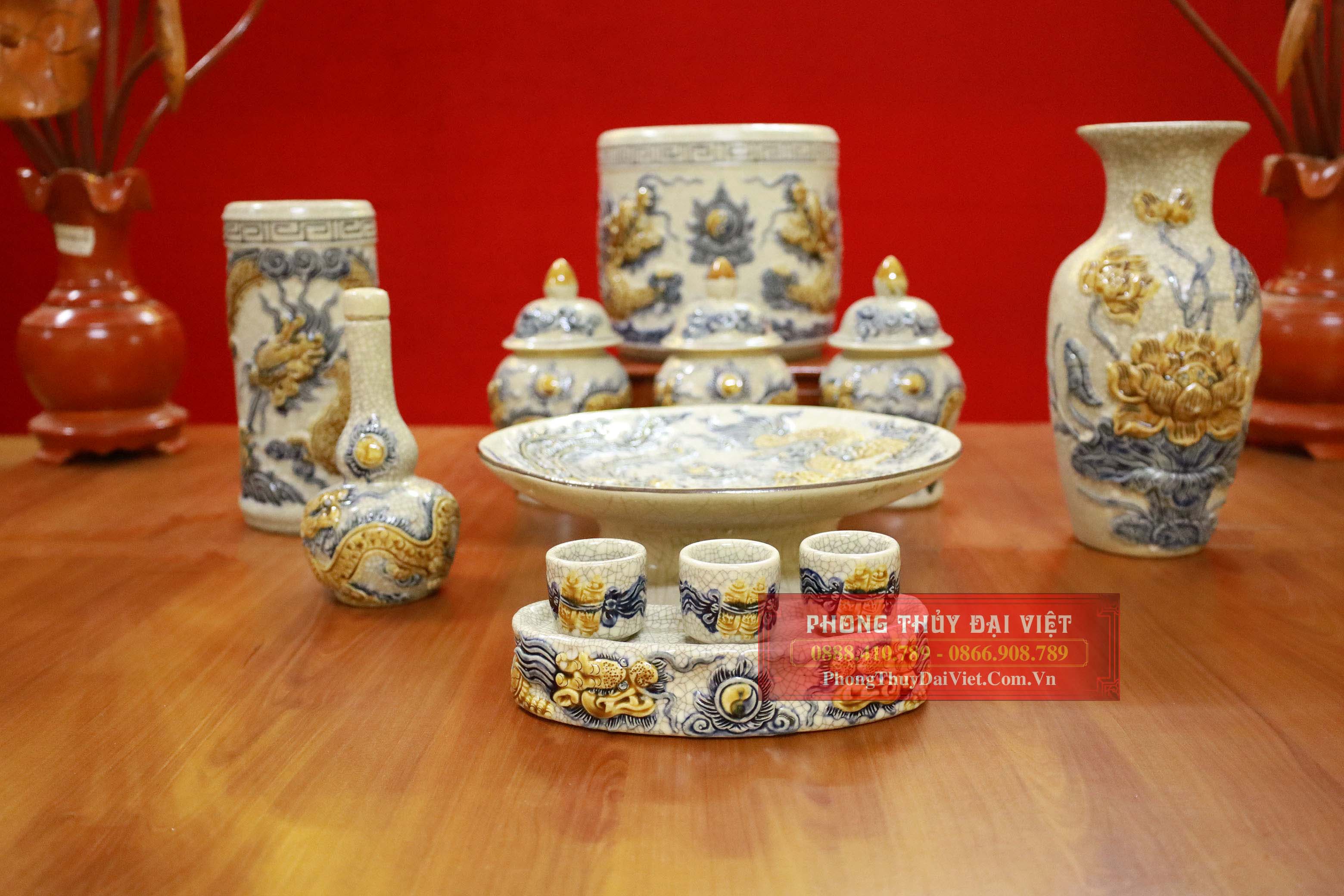 Bộ đồ thờ là biểu hiện tâm linh trên bàn thờ. Đó là nơi mỗi khi thắp hương tưởng niệm, cầu cúng hướng tới tổ tiên, các vị thần linh hay gửi lòng thành kính vào cõi vô hình. Đặc biệt là bộ đồ thờ gốm men rạn đắp nổi càng làm cho không gian thờ cúng thêm linh thiêng, trang trọng