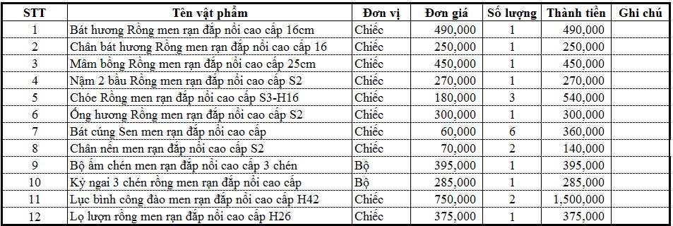 Thông Tin chung về bộ đồ thờ men rạn đắp nổi cao cấp Bát Tràng