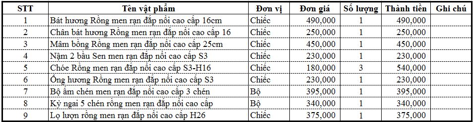 Thông Tin chung về bộ đồ thờ men rạn đắp nổi cao cấp Bát Tràng