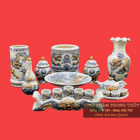 Bộ đồ thờ men rạn đắp nổi cao cấp MS18