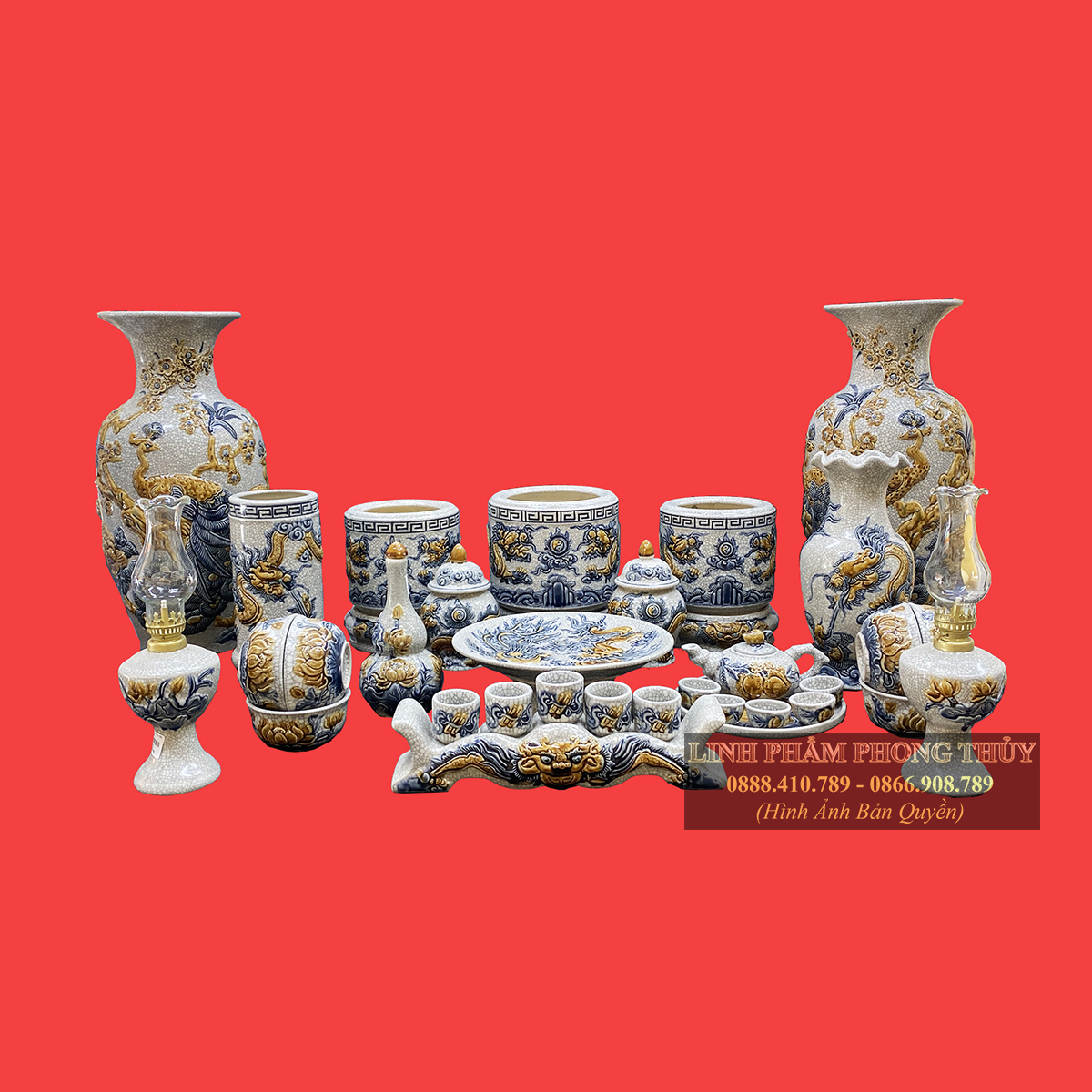 Thông Tin chung về bộ đồ thờ men rạn đắp nổi cao cấp Bát Tràng: