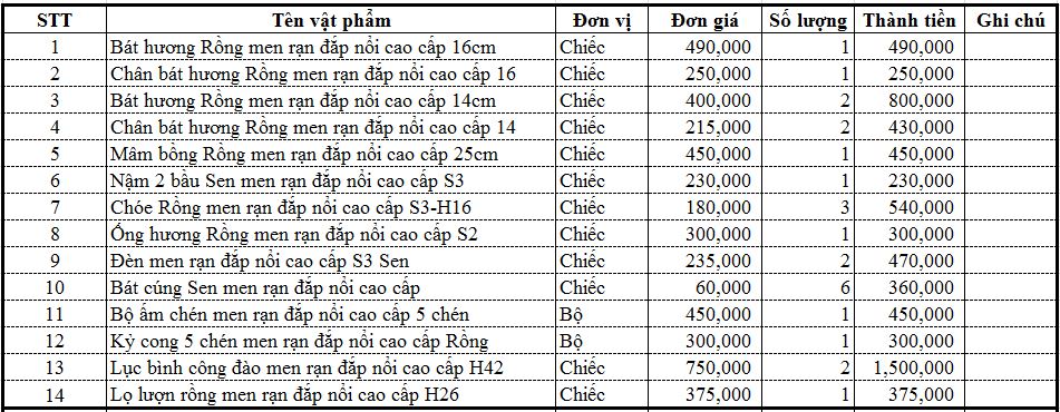 Thông Tin chung về bộ đồ thờ men rạn đắp nổi cao cấp Bát Tràng