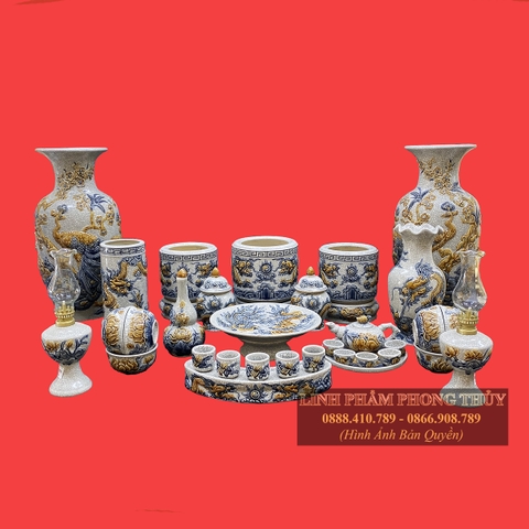 Bộ đồ thờ men rạn đắp nổi cao cấp MS4