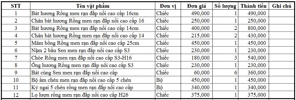 Thông Tin chung về bộ đồ thờ men rạn đắp nổi cao cấp Bát Tràng: