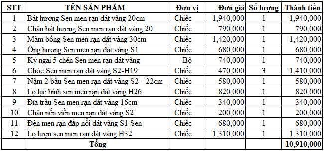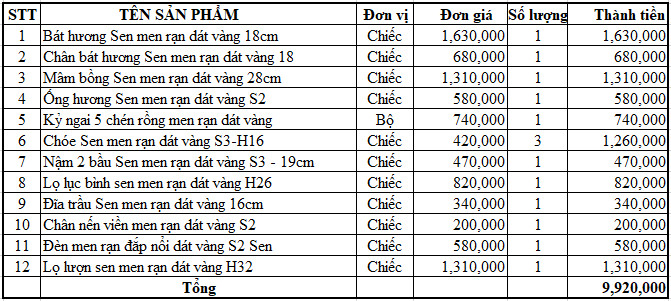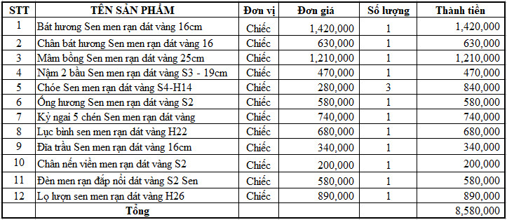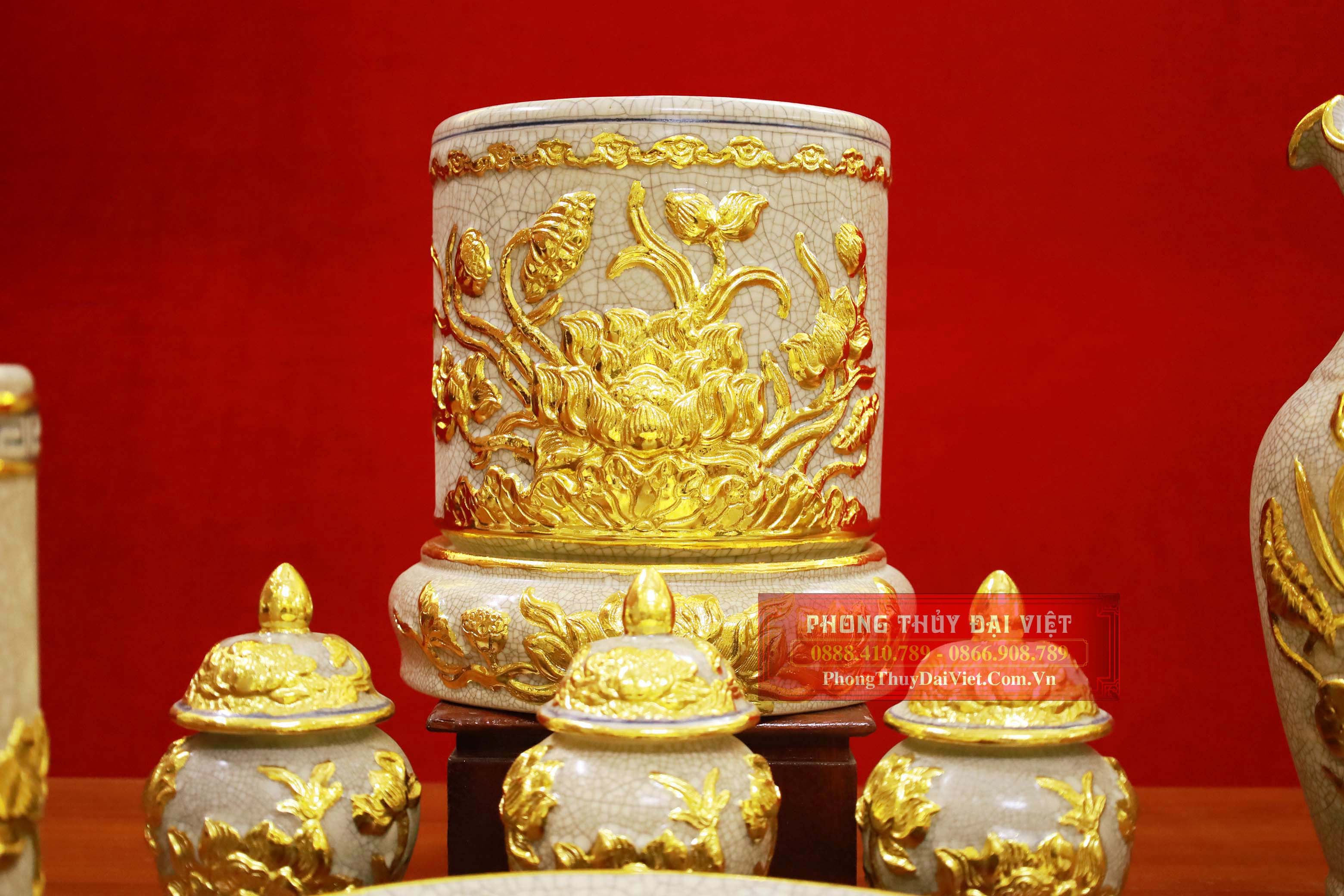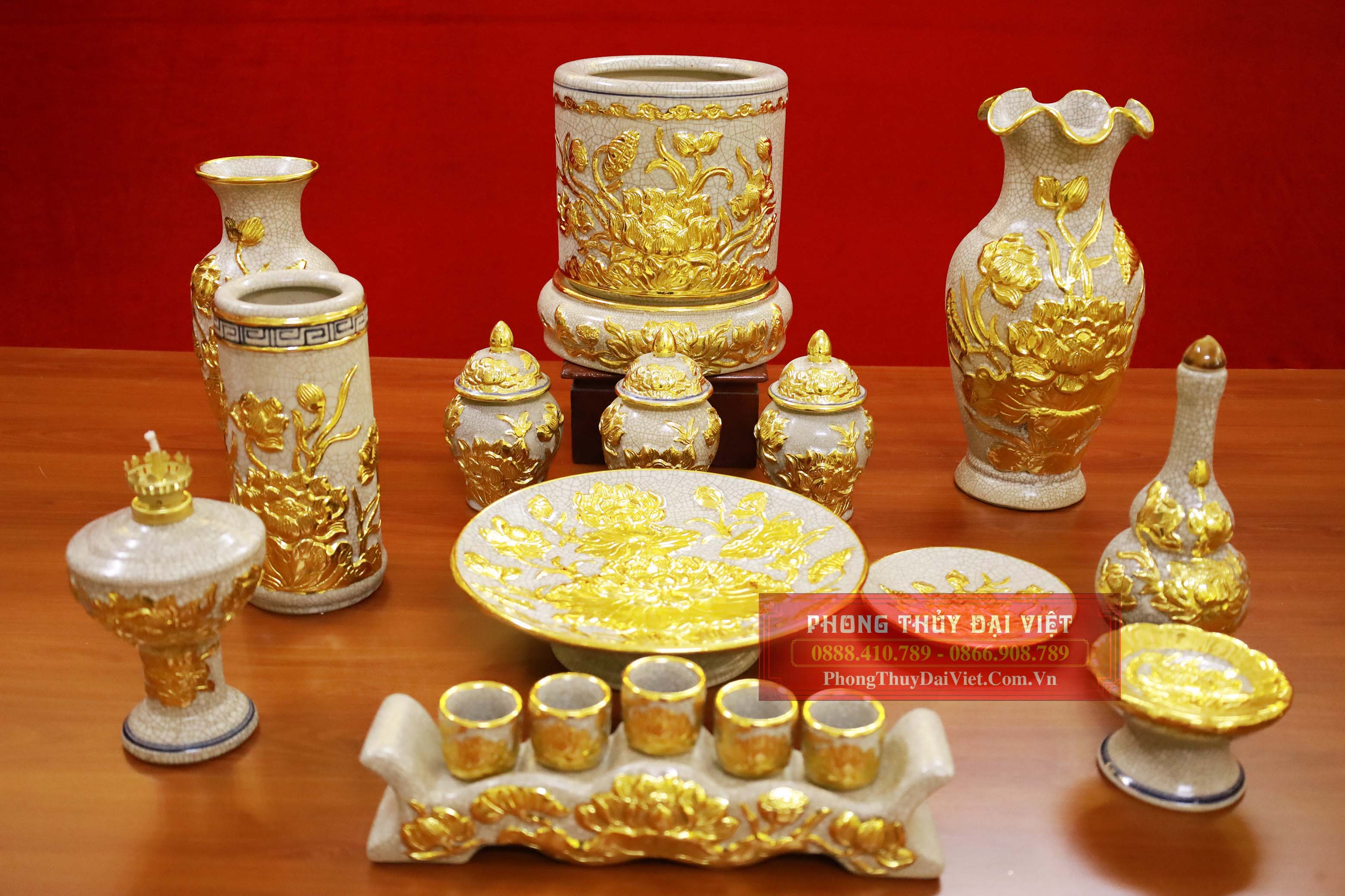 Bộ đồ thờ men rạn bát tràng dát vàng 24k - ban gia tiên và thần linh - DV04