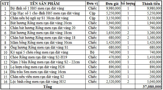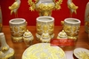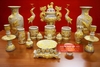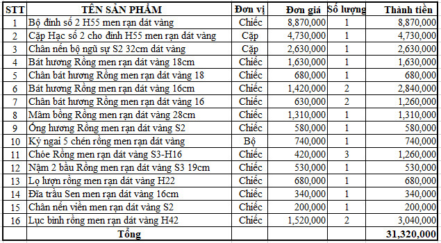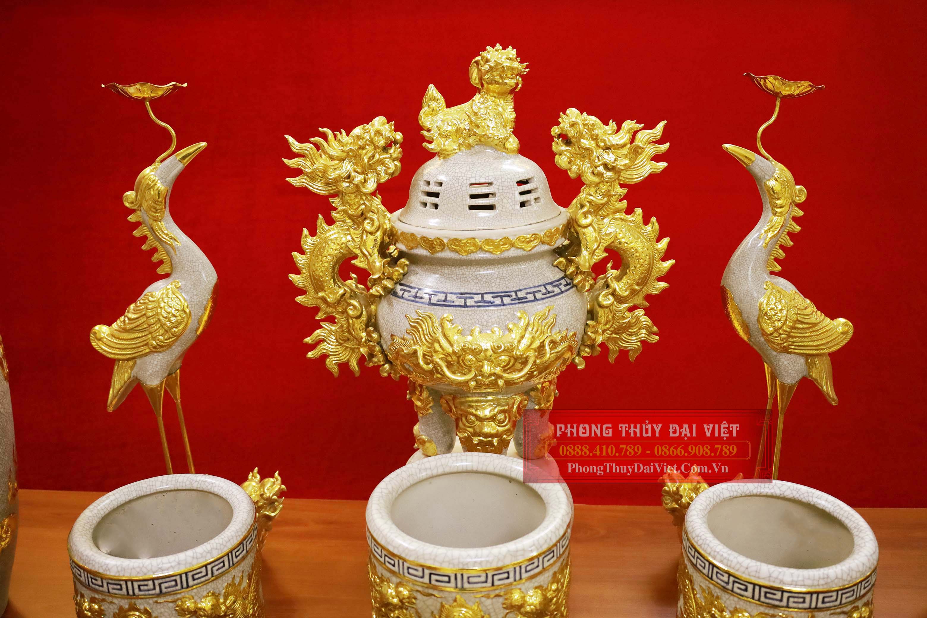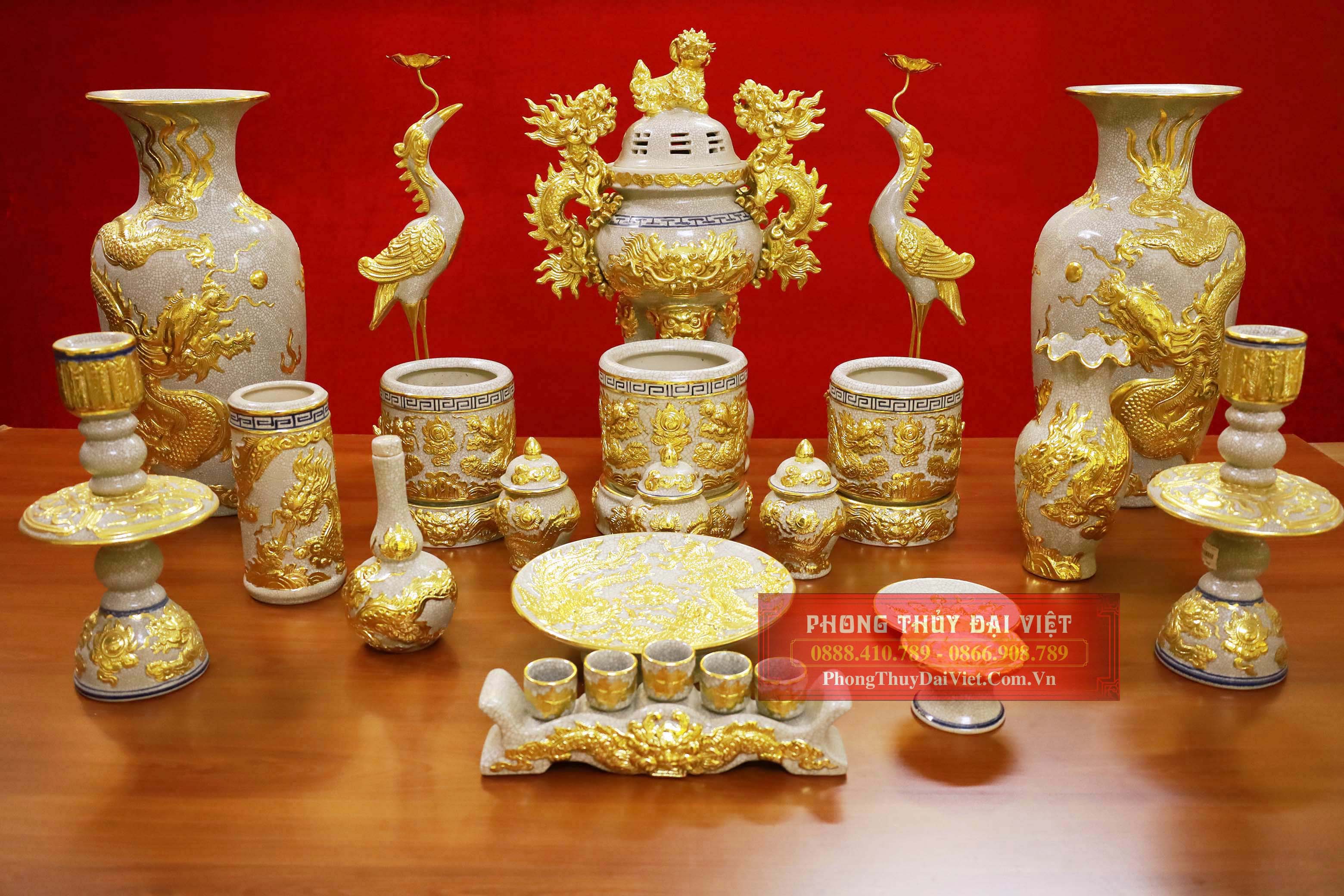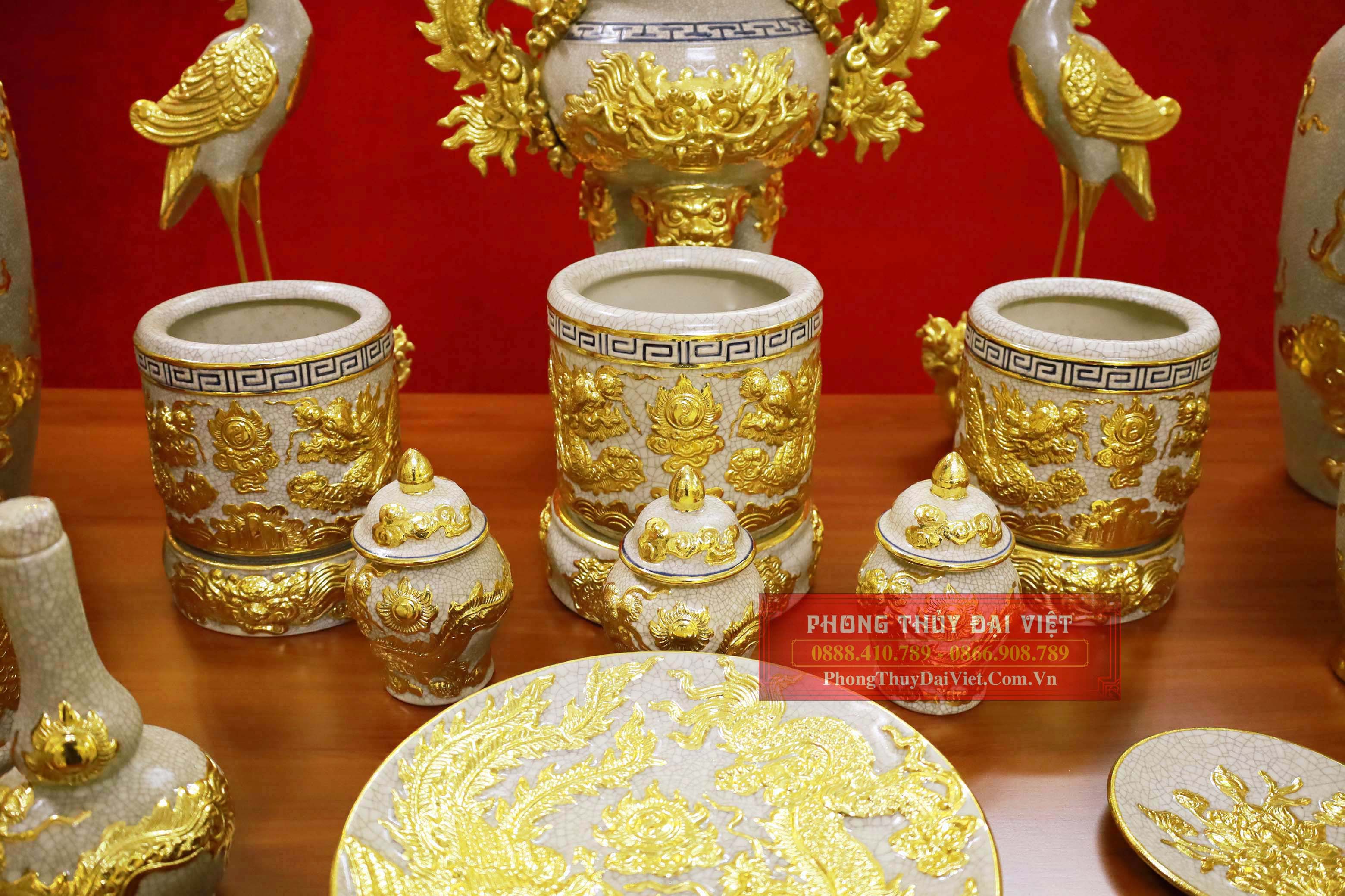Bộ đồ thờ men rạn bát tràng dát vàng 24k - bàn gia tiên và thần linh - DV06