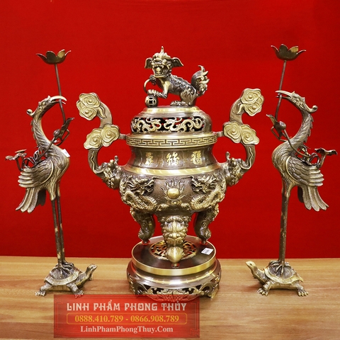 Bộ tam sự rồng đồng nguyên chất 2 công nghệ cặp hạc – Tam sự hạc