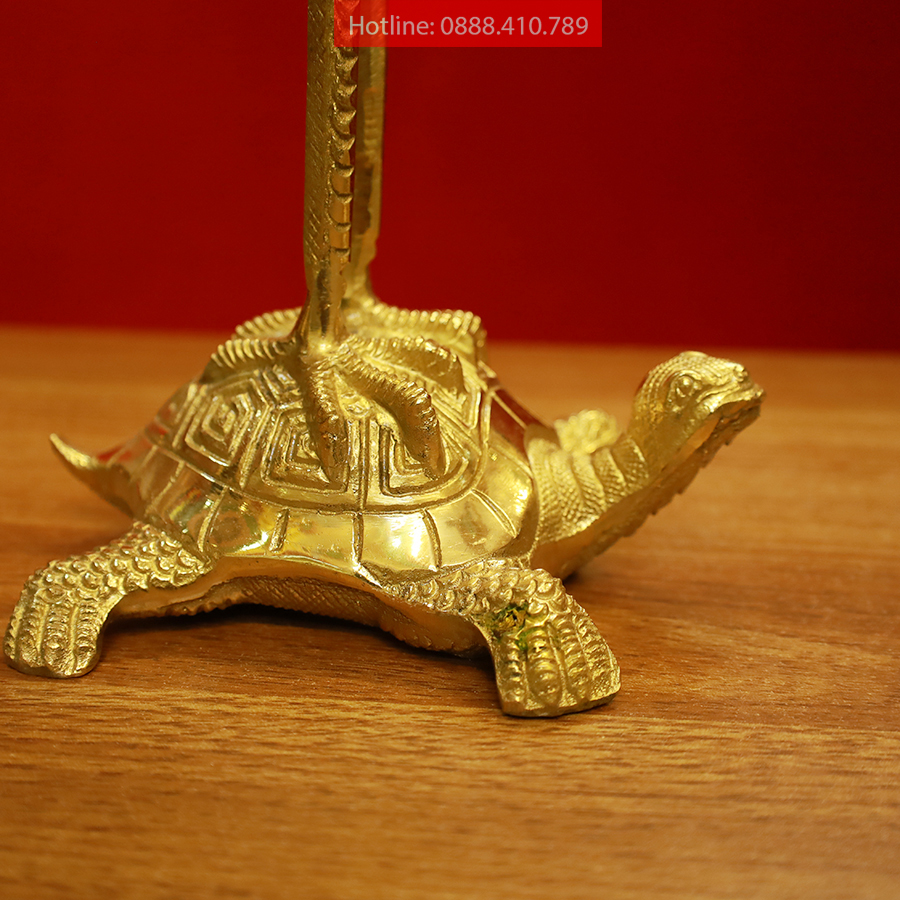 Đôi hạc ngự trên lưng rùa, mỏ ngậm cành sen với các đường nét thanh mảnh, uyển chuyển. Bộ lông vũ và phần đuôi của hạc được khắc họa đầy truyền cảm, tạo nên sự thanh cao. Chân hạc khẳng khiu, đứng thẳng, đầu vươn lên cao. Trưng bày cặp hạc trên ban thờ gia tiên sẽ giúp gia chủ cũng như các thành viên trong nhà nhận được những điều tốt đẹp và may mắn.