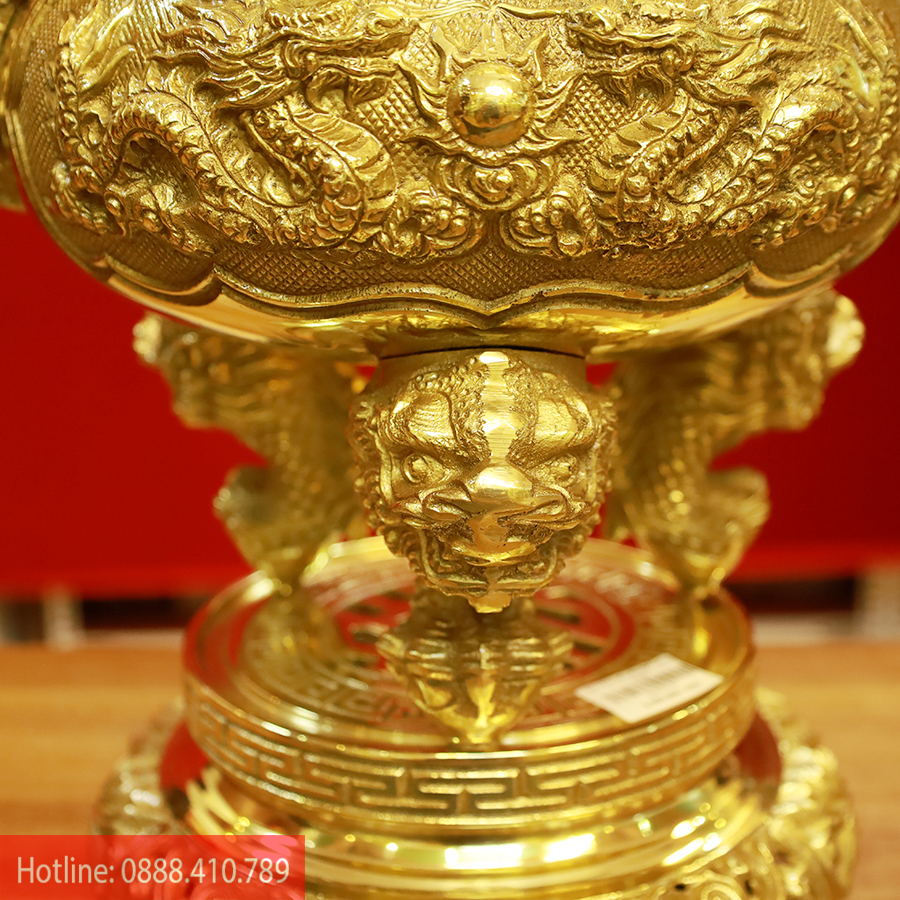 Do đó, bộ phần này luôn thể hiện sự vững chãi, uy nghiêm của ban thờ.. Trong đó, nắp đỉnh nổi bật với tượng Nghê đang ngậm viên ngọc mang ý nghĩa bảo vệ và xua đuổi những điều không may mắn đến với gia chủ. Thân đỉnh có cặp rồng được chạm khắc tinh xảo, sắc nét với hoa văn nổi bật.