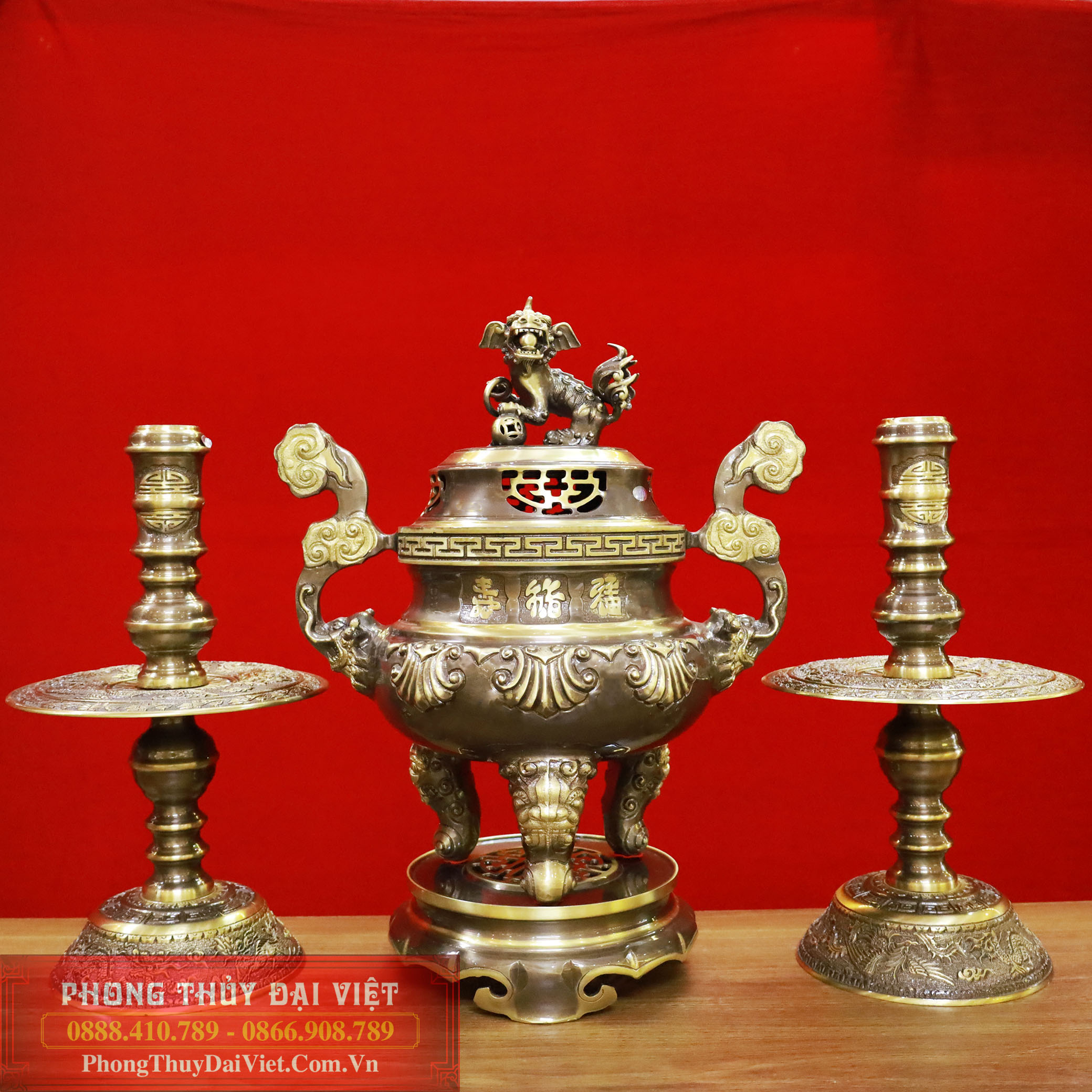 Bộ tam sự bao gồm 1 Đỉnh đồng, và 2 chân nến.