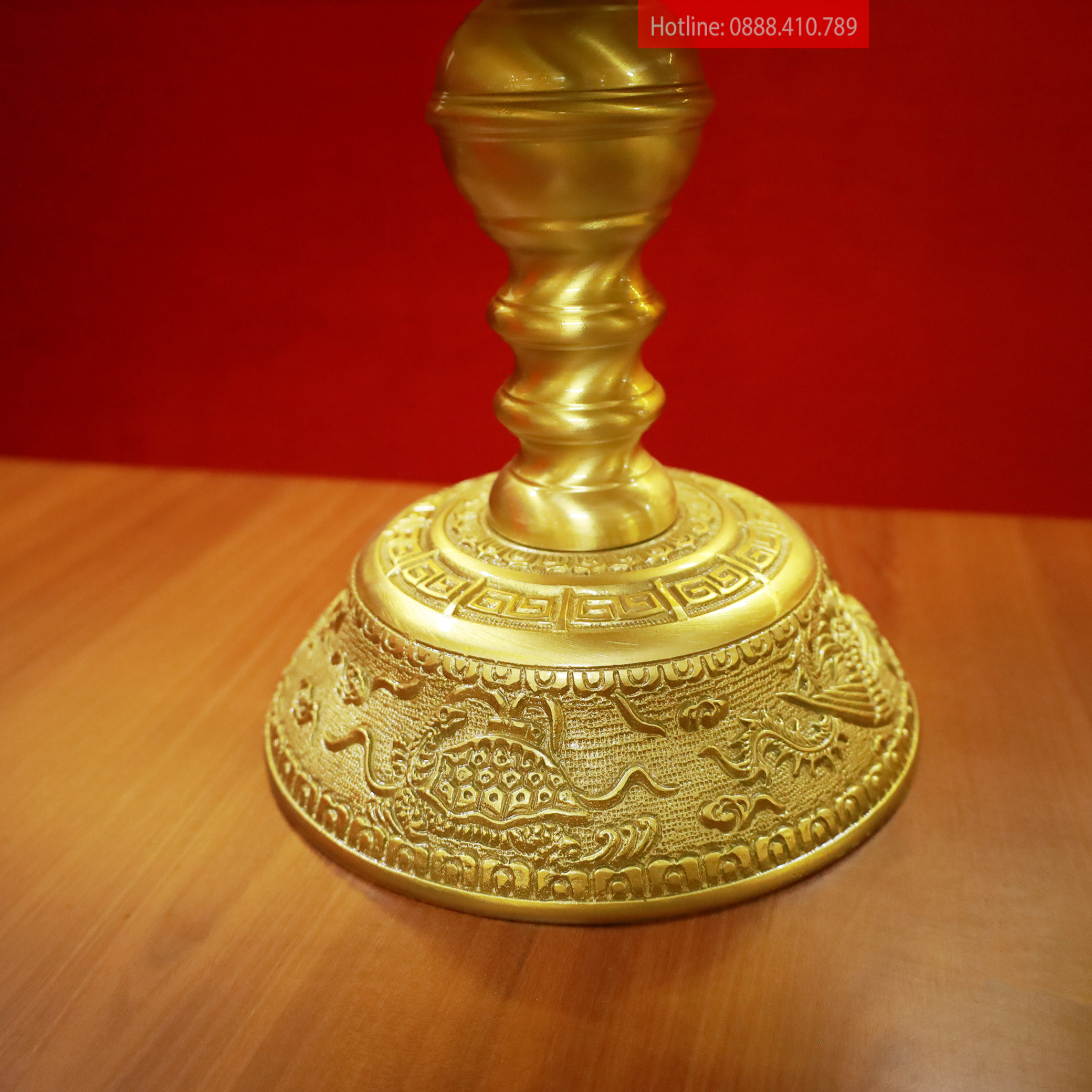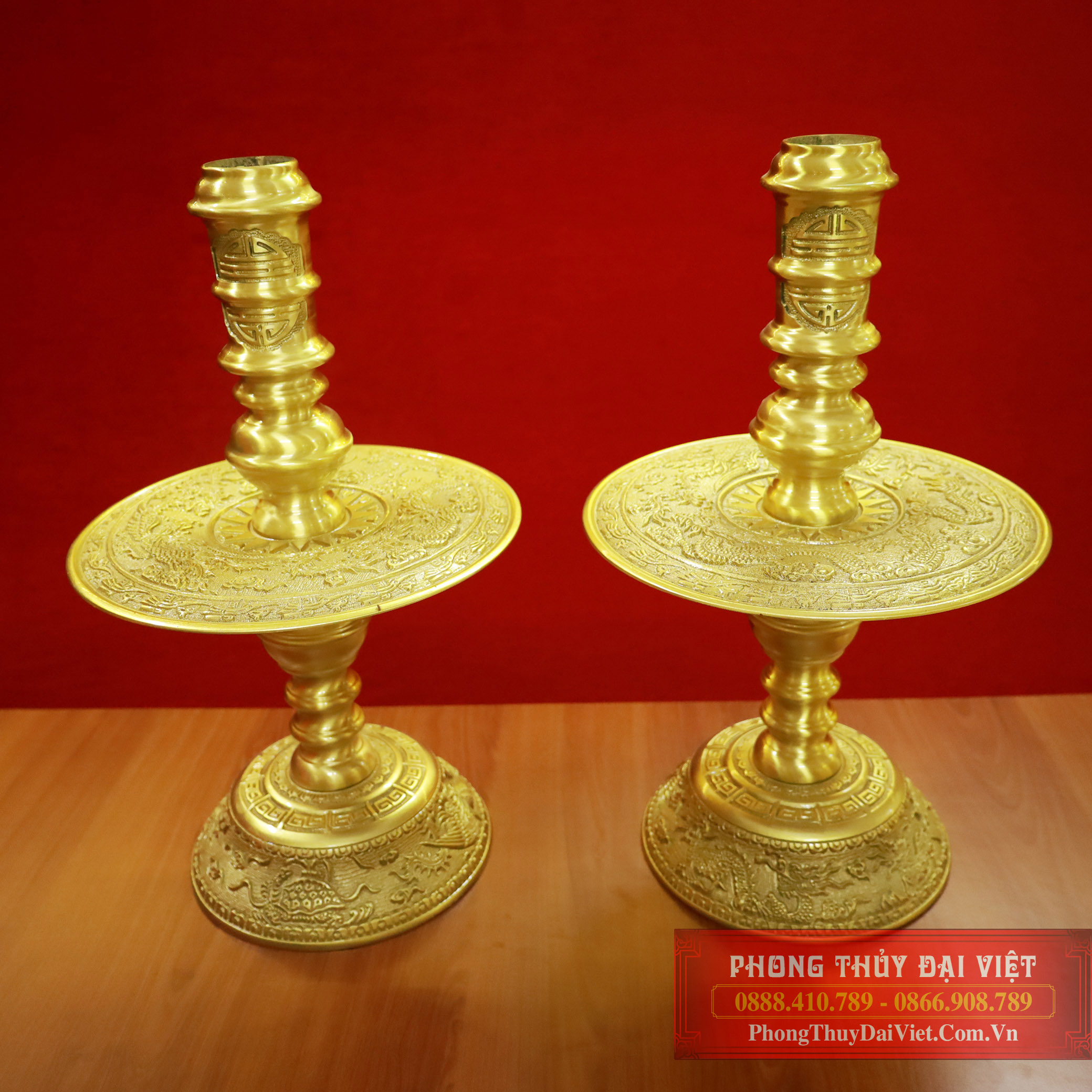Cặp nến hoa văn: ngoài cùng là hai chân nến, chân nến được chạm khắc hoa văn tinh sảo sắc nét (nến trơn không hoa văn giá thành sẽ rẻ hơn). Cặp chân nến tượng trưng cho âm dương, có hình bát úp với hoa văn sắc nét được thiết kế một cách vững chãi.
