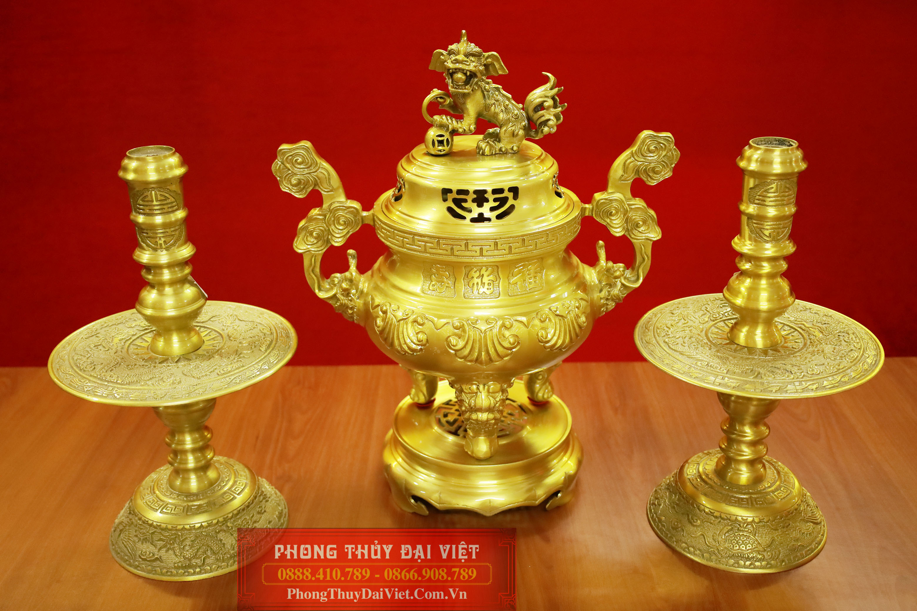 Bộ tam sự bao gồm 1 Đỉnh đồng, và 2 chân nến.