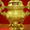 Bộ tam sự này được chế tác từ đồng nguyên chất mang màu vàng đậm đặc trưng. Chính vì vậy, chúng vừa giữ được nét mộc mạc, tinh tế, vừa tỏa ra ánh kim sắc sảo, tạo lên sự cao quý cho không gian thờ tự thêm phần trang trọng và linh thiêng
