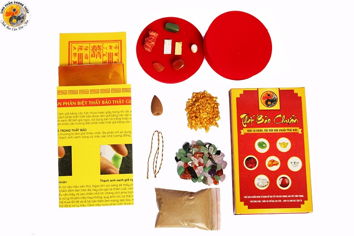 Cốt thất bảo là đúng như tên gọi gồm 7 món bảo vật đặt trong lòng bát hương bao gồm: thiếc vàng, thiếc bạc, thạch anh, xà cừ, ngọc, mã lão, san hô đỏ. Các món này tượng trưng cho những vật phẩm quý nhất trong đất trời mà nhà phật thường dùng. Trong đó có lá vàng thật và bạc thật là hai thành phần vô cùng quan trọng, mang ý nghĩa đặc biệt.