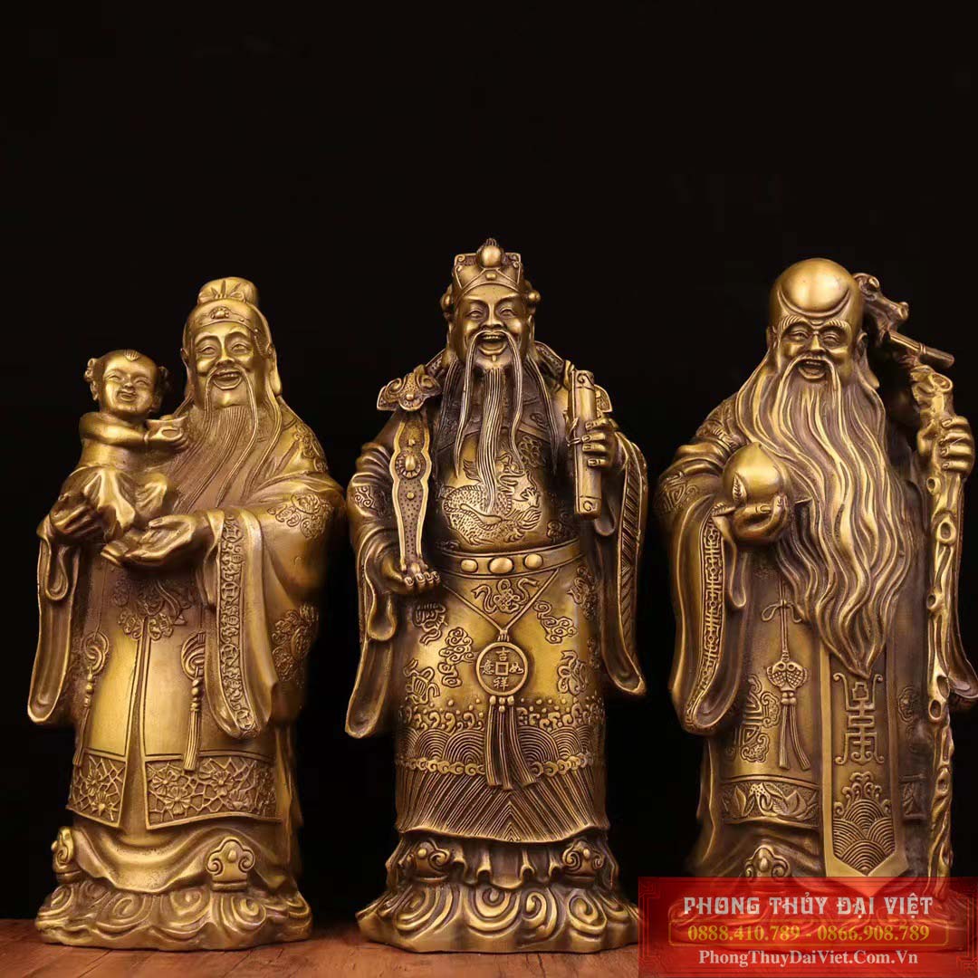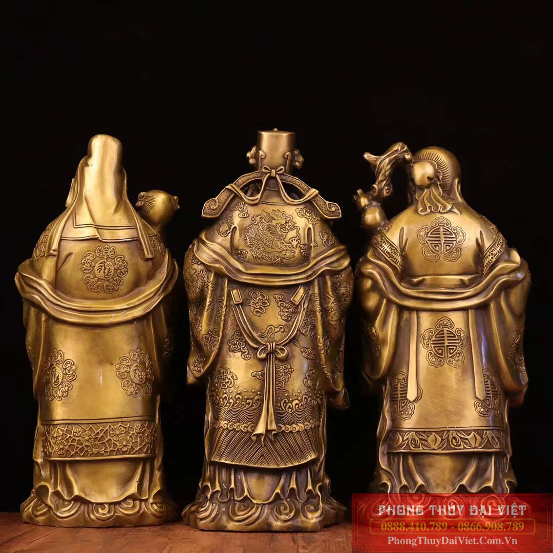 Cả ba vị đều được thể hiện rất chi tiết, sống động đường nét sắc xảo, trau truốt. Đặt bộ sản phẩm trong nhà với mong muốn sức khoẻ dồi dào, trường thọ, tài lộc đầy nhà, thăng quan tiến chức.