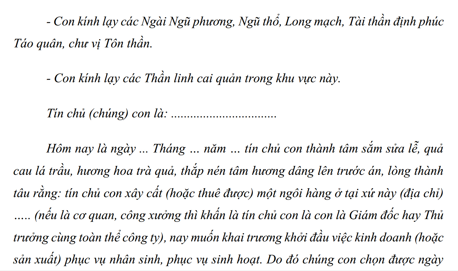 Đến giờ đẹp, người chủ tiến hành thắp hương vào bát hương có cốt thất bảo chuẩn và khấn lễ khai trương cửa hàng theo nội dung sau: