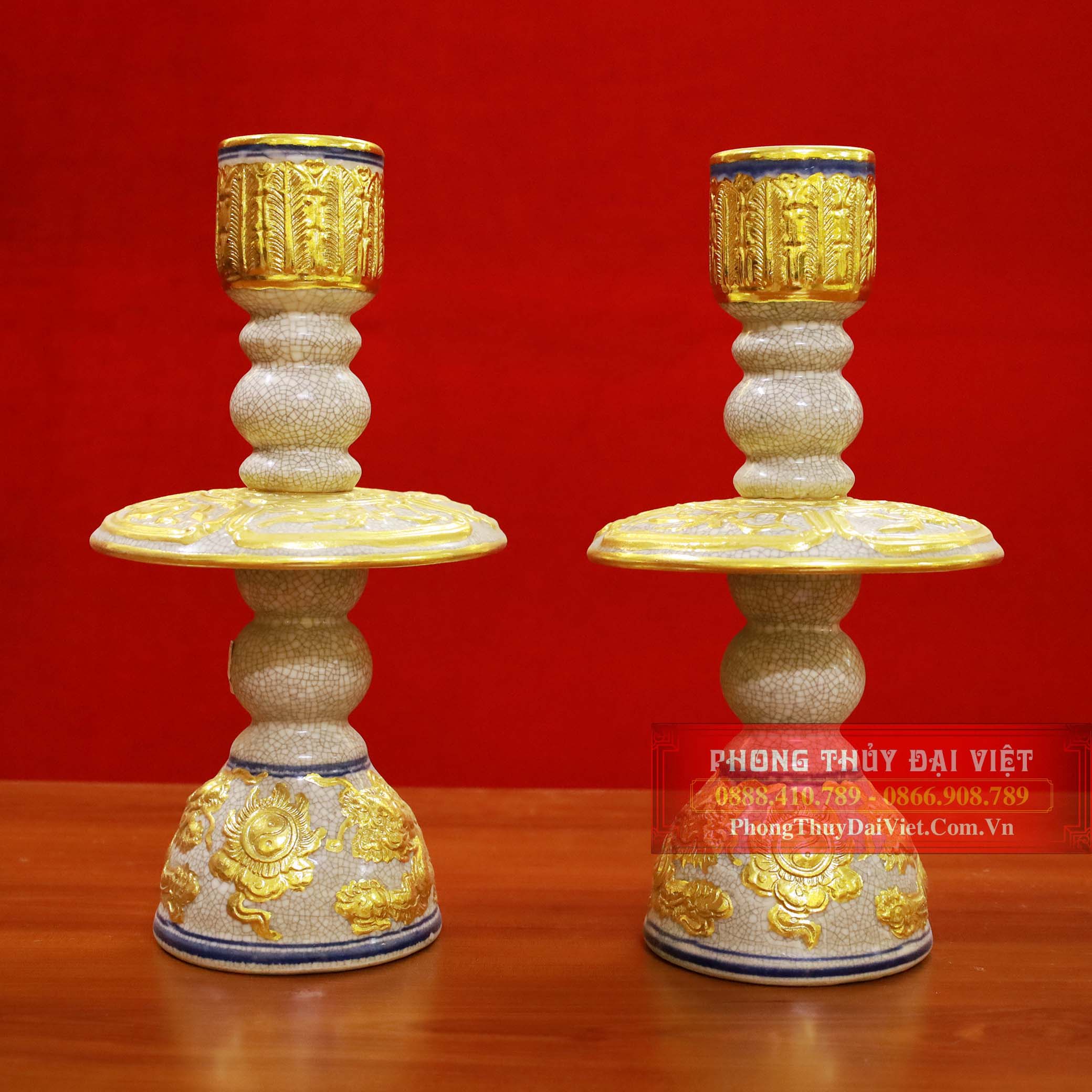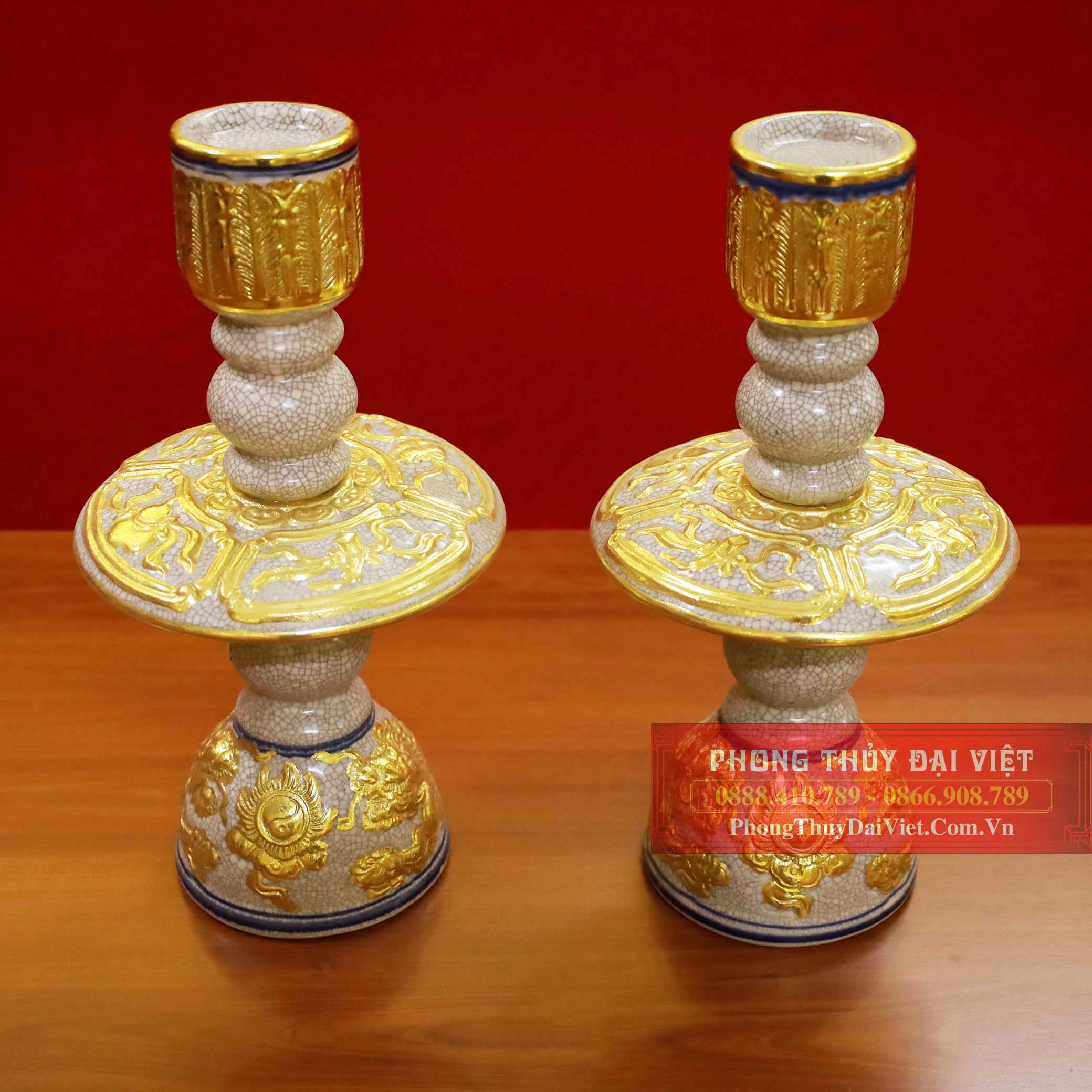 Cặp chân nến men rạn đắp nổi dát vàng 24k cao cấp