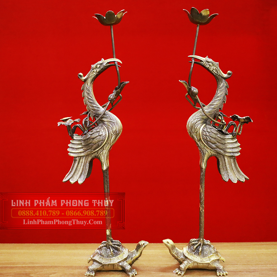 Trong bộ đỉnh đồng tam sự, ngũ sự, cặp hạc đứng trên lưng rùa là khí cụ không thể thiếu trên ban thờ cùng với lư hương và đôi chân nến tạo nên một thế vững chắc, một sợi dây liên kết tâm linh huyền bí.