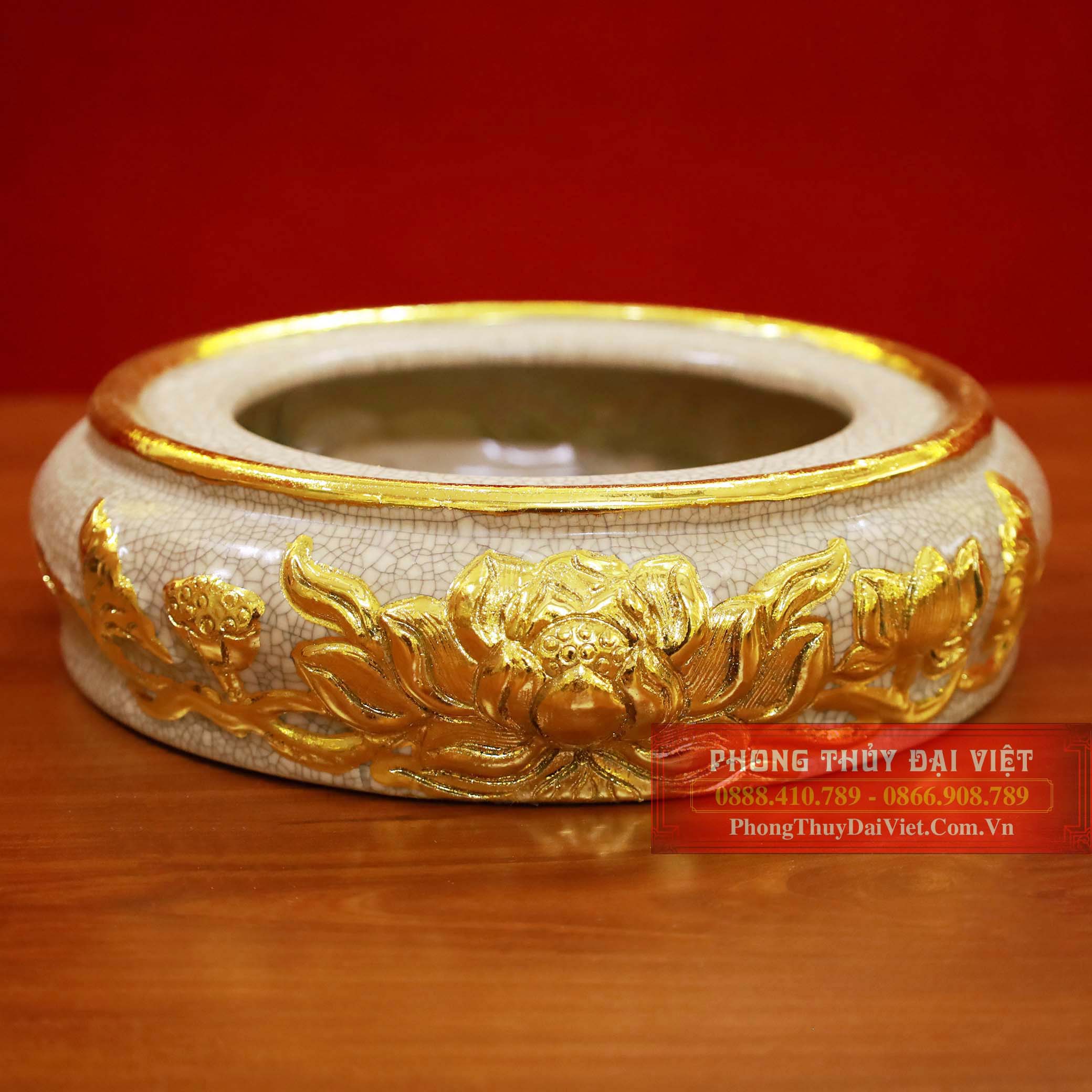 Chân bát hương sen men rạn đắp nổi dát vàng 24k cao cấp