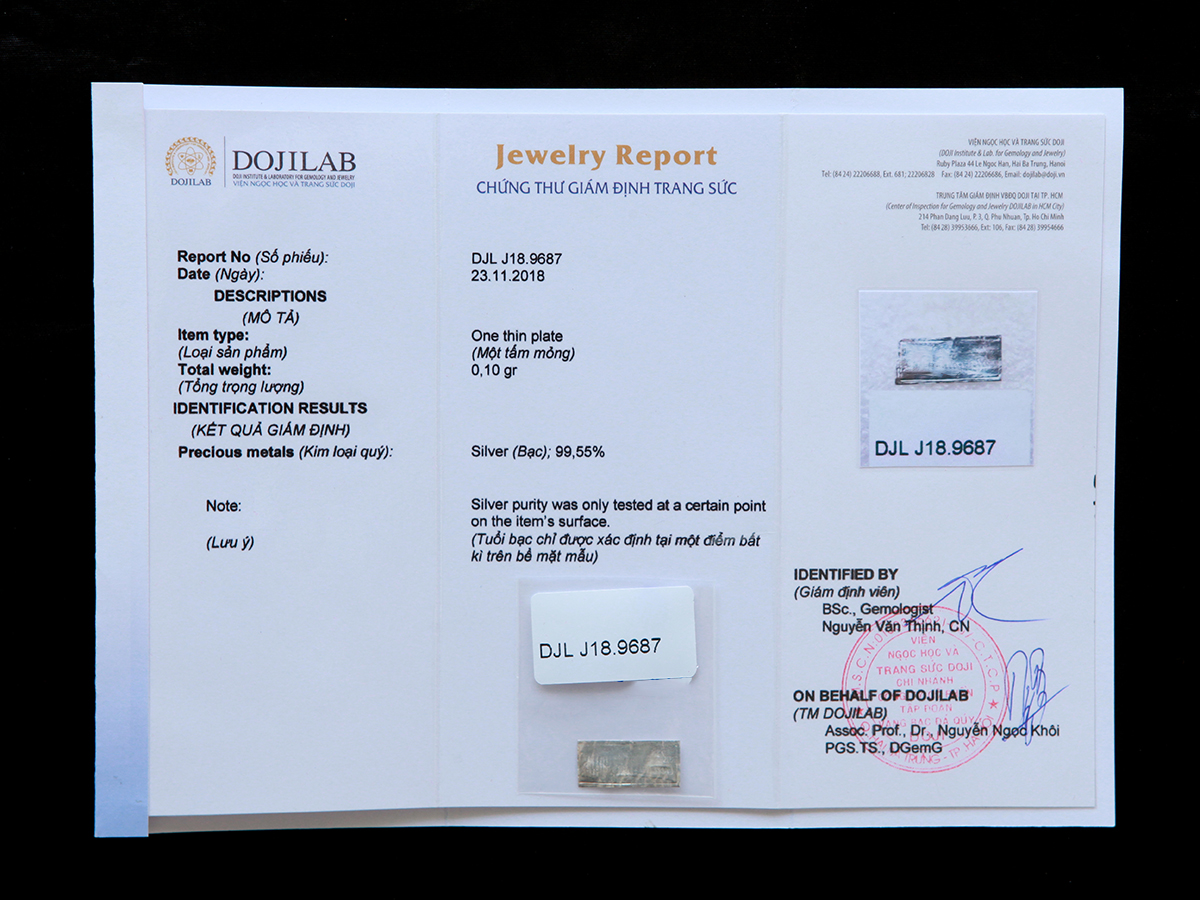 Giấy kiểm định Bạc tại DOJI: