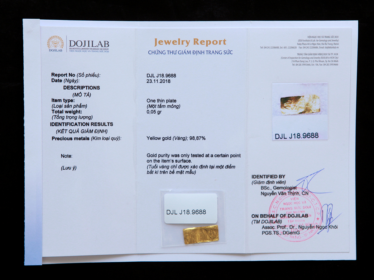 Giấy kiểm định vàng tại DOJI: