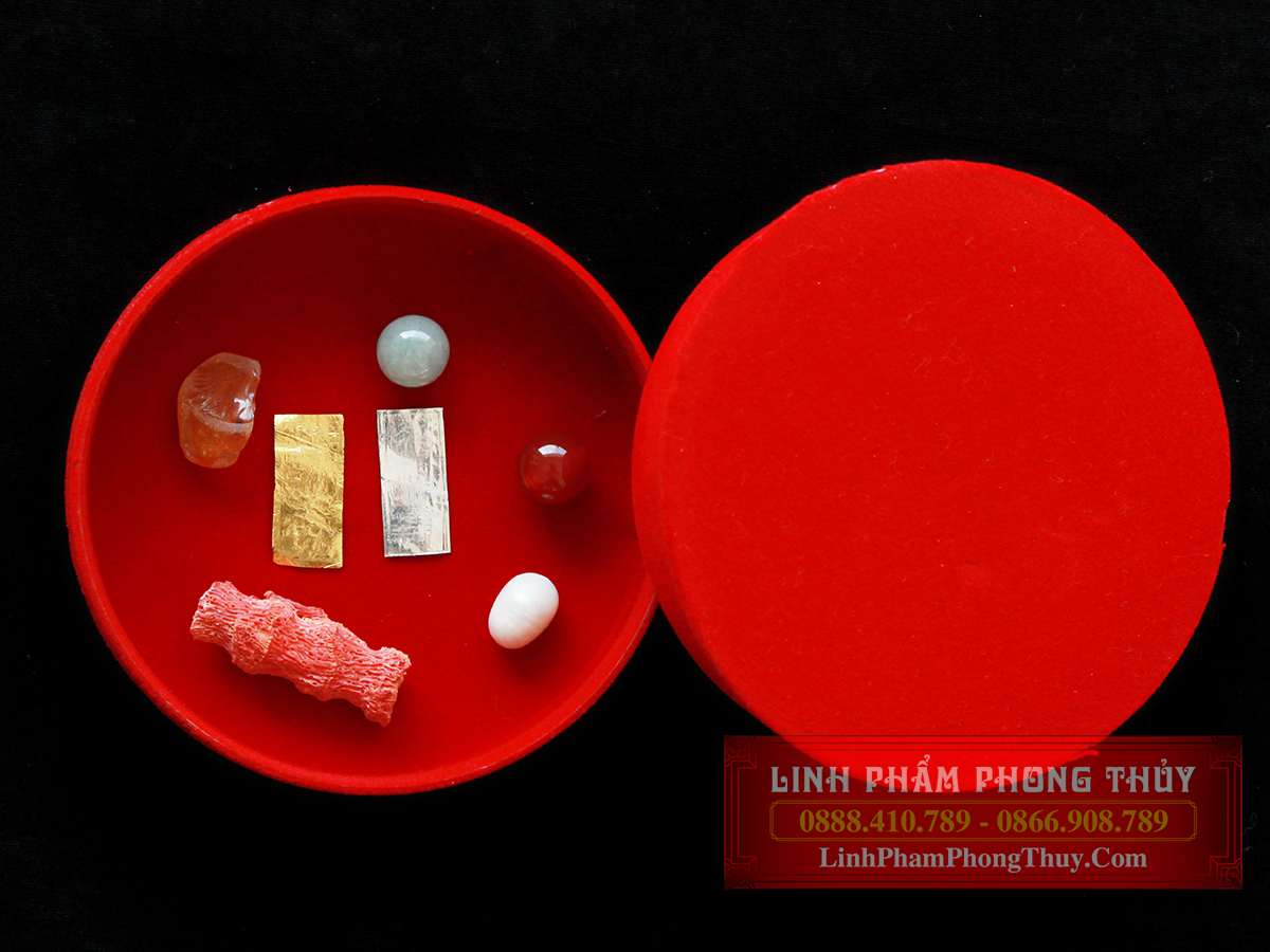 Đặc biệt Bộ cốt thất bảo Cao Cấp được Linh Phẩm Phong Thủy sử dụng lượng vàng và lượng bạc lớn hơn, ngọc bích được thay thế bằng ngọc phỉ thúy và tặng kèm gói bột thơm ngũ vị hương để tẩy uế và bao sái.