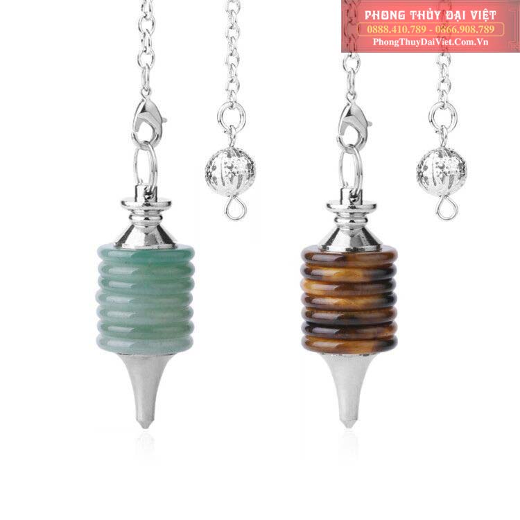 Con lắc được thiết kế 7 tầng chắc chắn, phần dây lắc được đính vào trọng tâm viên đá giúp quá trình đo đựơc chính xác. . Con lắc được làm từ đá mắt hổ, loại đá này có hiệu ứng mắt mèo, khi gặp ánh sáng tự nhiên bề mặt đá có hiệu ứng ánh lụa vô cùng hút mắt, đá khai thác trong tự nhiên nên mang nguồn năng lượng rất lớn.