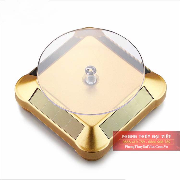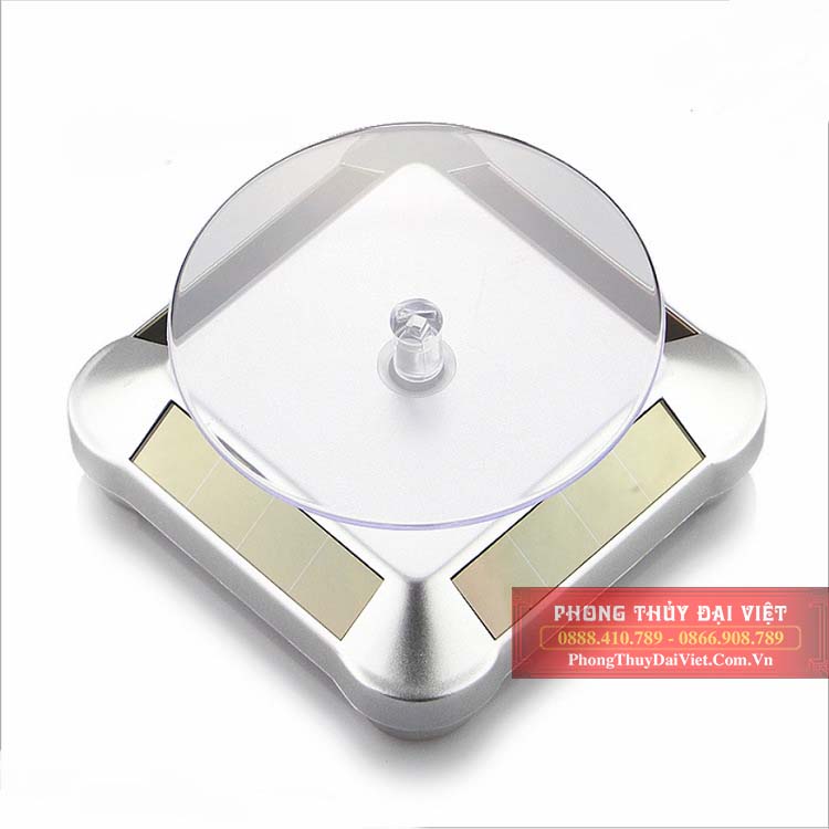 Sản phẩm gồm bàn xoay và phần chân. Bàn xoay đặt vật trưng bày có hình tròn bằng mica trong suốt xoay tròn 360 độ. Phần chân dạng hình tháp vuông bằng nhựa. Đế xoay có thể chạy bằng pin hoặc sử dụng năng lượng mặt trời.