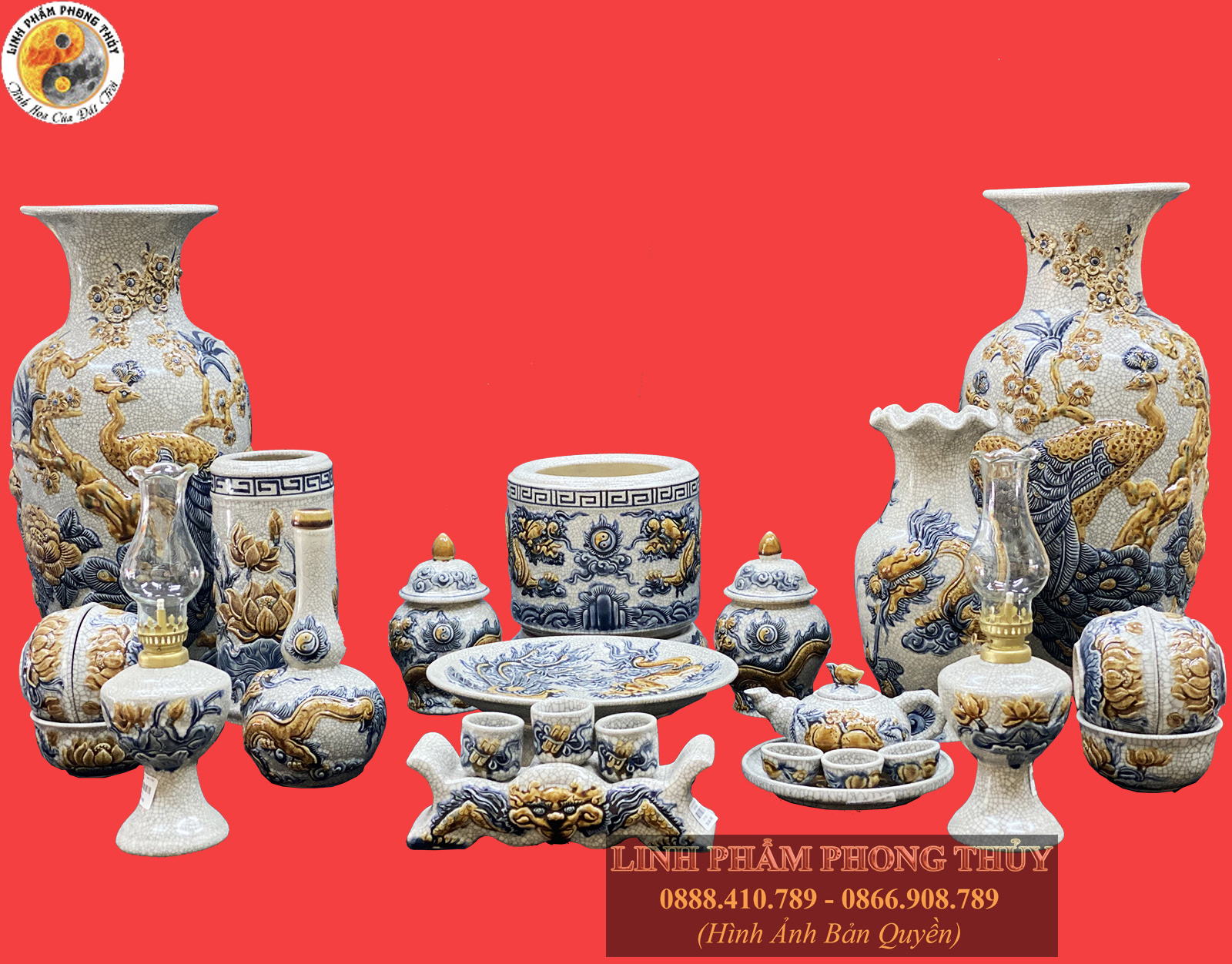 Linh Phẩm Phong Thủy với nhiều năm năm kinh nghiệm chuyên cung cấp các vật phẩm phong thủy chính hãng là nơi để khách hàng tin tưởng lựa chọn những bộ đồ thờ Bát Tràng chất lượng. Khi mua hàng tại đây, bạn sẽ được đảm bảo về nguồn gốc, xuất xứ cũng như có chế độ bảo hành chuyên nghiệp. Hãy liên hệ ngay hotline: 0888.410.789 - Linh Phẩm Phong Thủy chúng tôi sẽ hỗ trợ và tư vấn tận tình cho bạn.