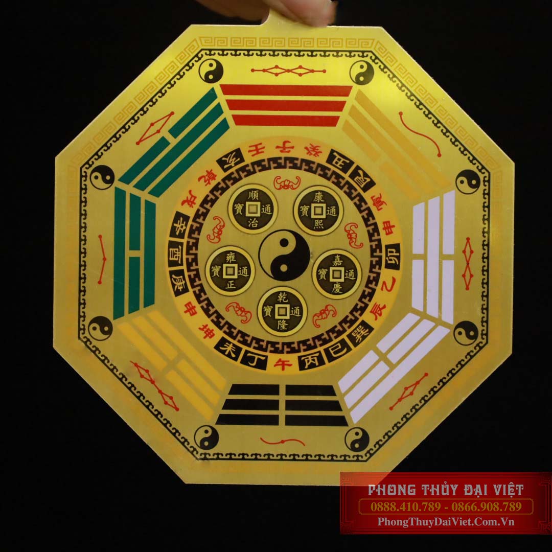 Gương bát quái được làm đồng vàng cao cấp, với độ bền cao có thể chịu được nắng mưa khi treo trước cửa nhà. Gương bát quái âm dương treo trước cửa nhà có thể xua đuổi khí xấu, hóa giải mọi điềm gở, giúp gia chủ có một cuộc sống yên bình.