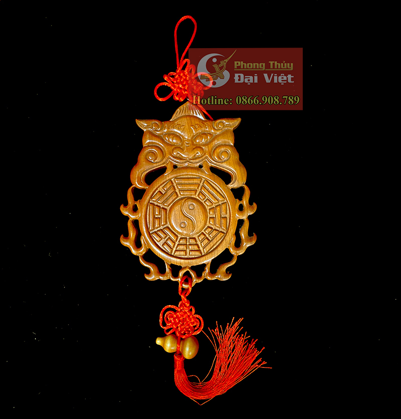 Gương Bát Quái Hổ Phù Gỗ Đào Hoá Sát