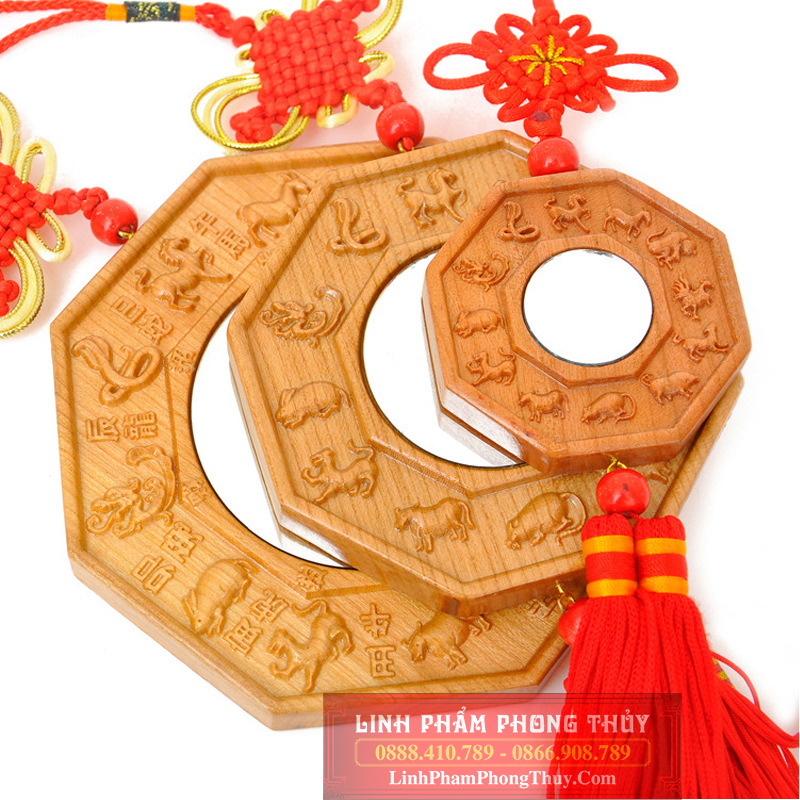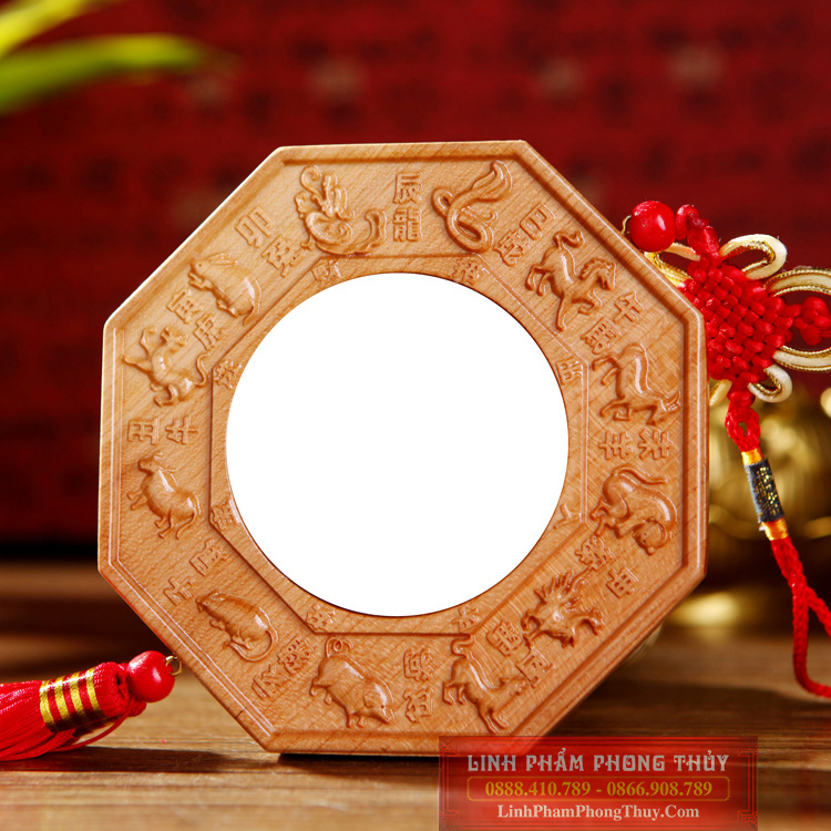 Mặt trước được chạm khắc 12 con giáp kết hợp với gương phẳng ở chính giữa giúp hóa giải nhà phạm thái tuế từ 12 phương hướng.