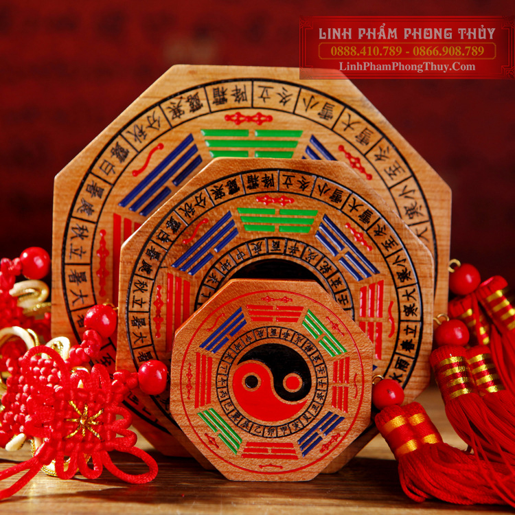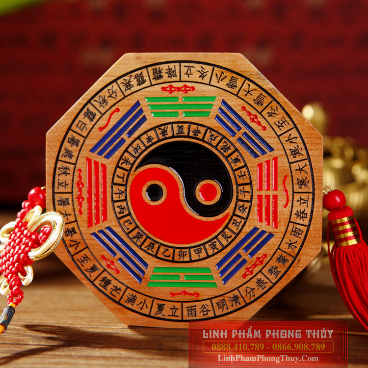 Mặt sau được khắc hình âm dương ngũ hành cùng đồ hình quẻ mang linh lực kỵ tà và hóa giải xung sát