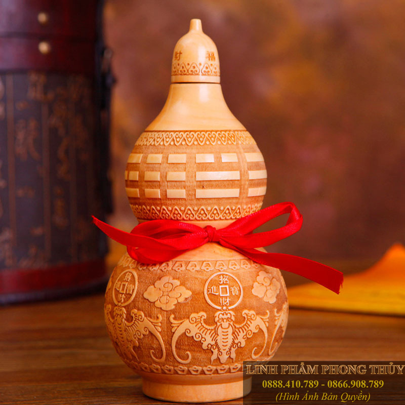 + Công dụng và cách sử dụng: Hồ Lô Phong Thuỷ được chế tác từ gỗ đào có công năng thu nạp các khí xấu và không để các tà khí xấu thoát ra. Hồ Lô được đặt trước cửa phòng, trong phòng ngủ, đặt trên ban thờ, bàn làm việc hoặc bàn học để hút khí thu sát.