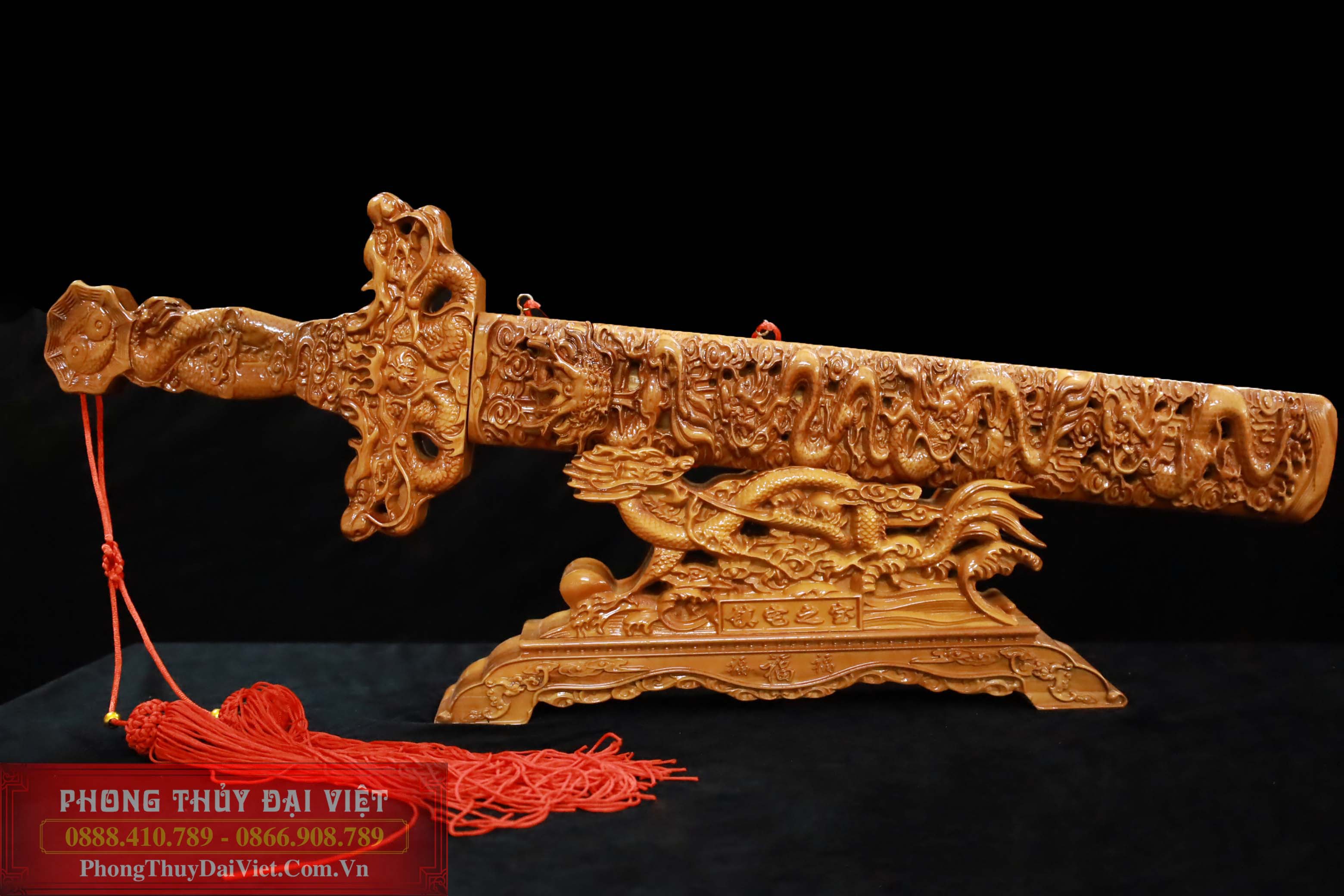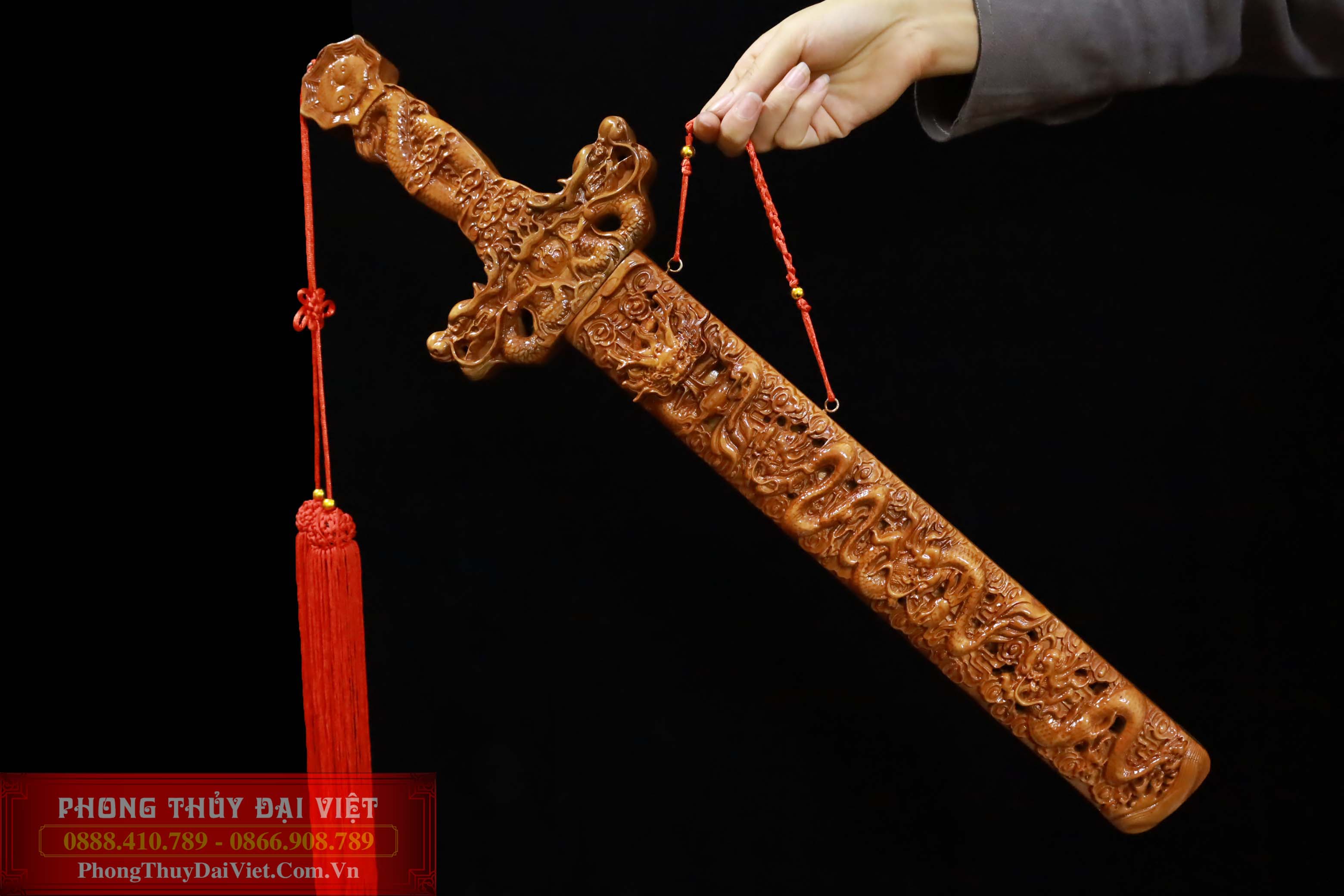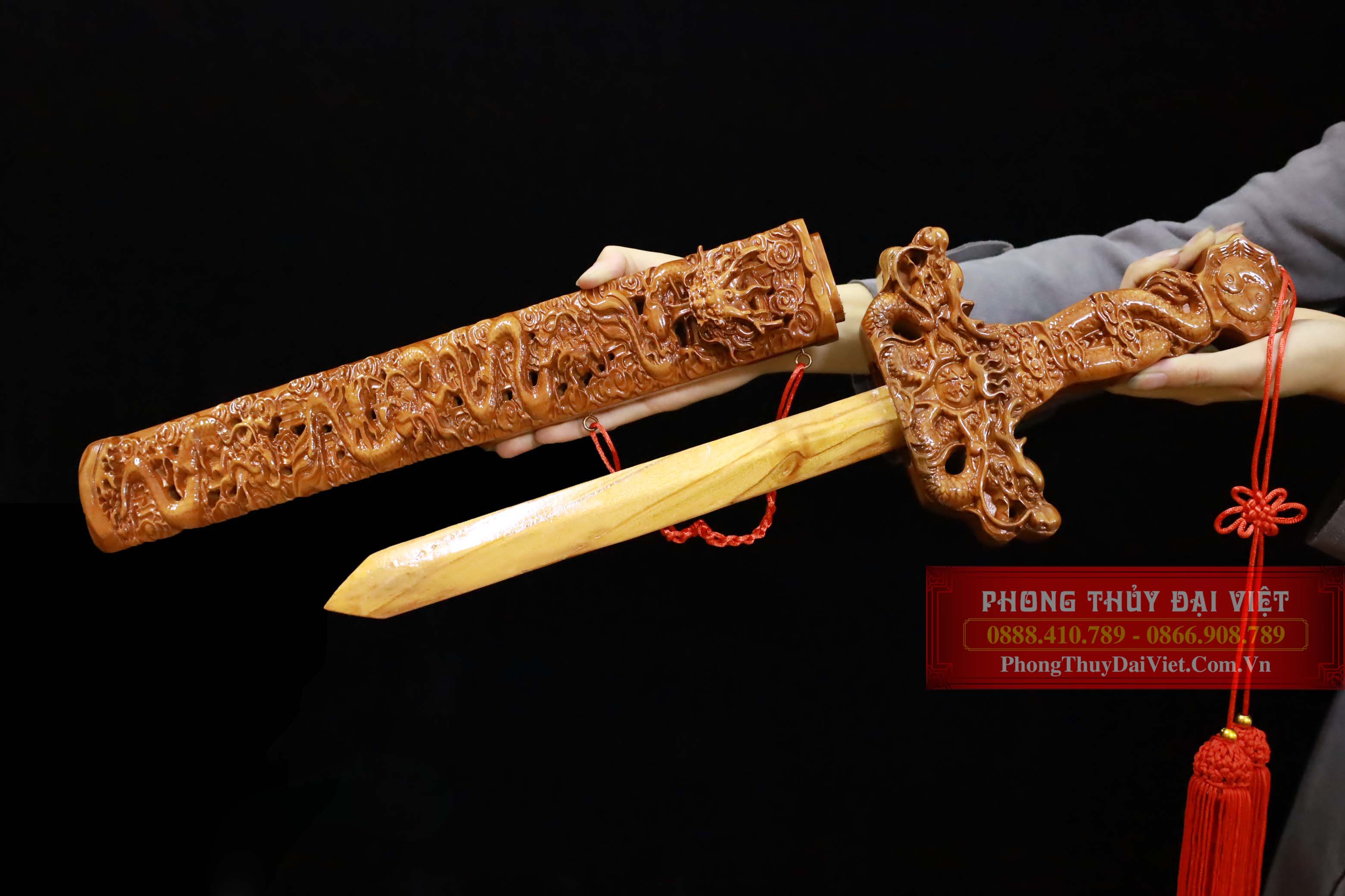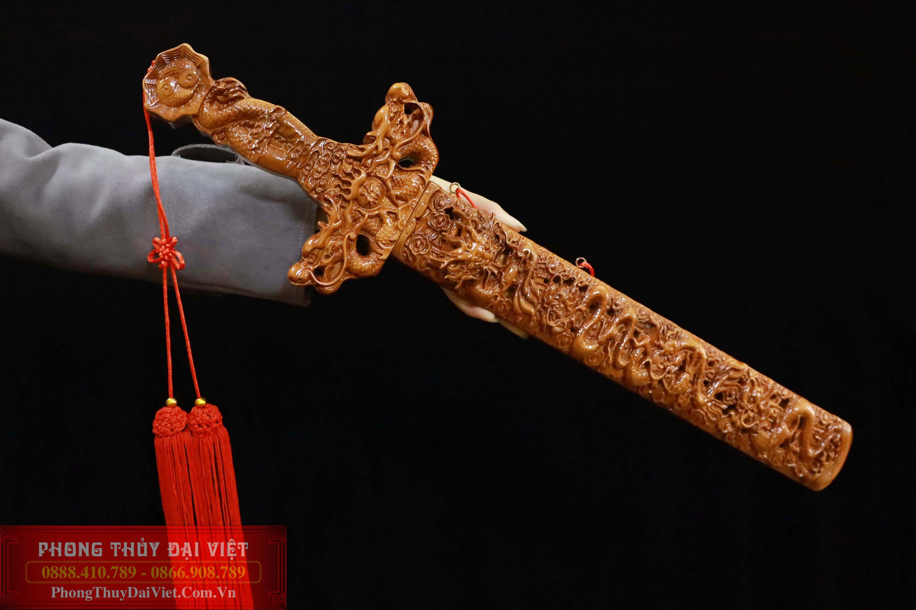 + Kiếm Gỗ Đào Khắc Rồng Chiều Tài Hút Lộc