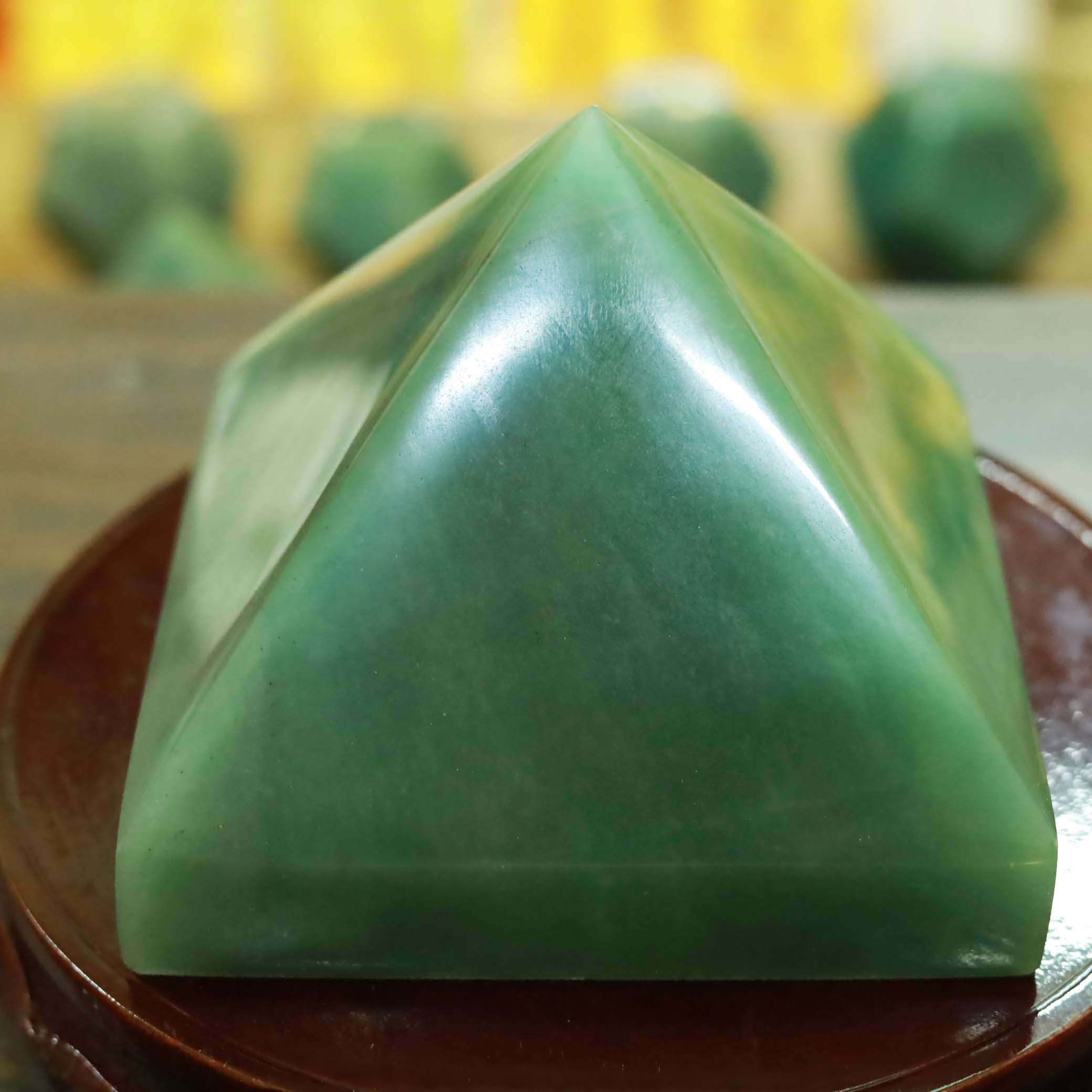 Sự kết hợp giữ kim thự tháp và thạch anh xanh tạo nên một vật phẩm phong thuỷ tuyệt vời, giúp cải thiện sức khoẻ, mang lại may mắn, bình an cho gia chủ. Đặc biệt, vật phẩm này còn có khả năng chiêu tài, cầu lộc.