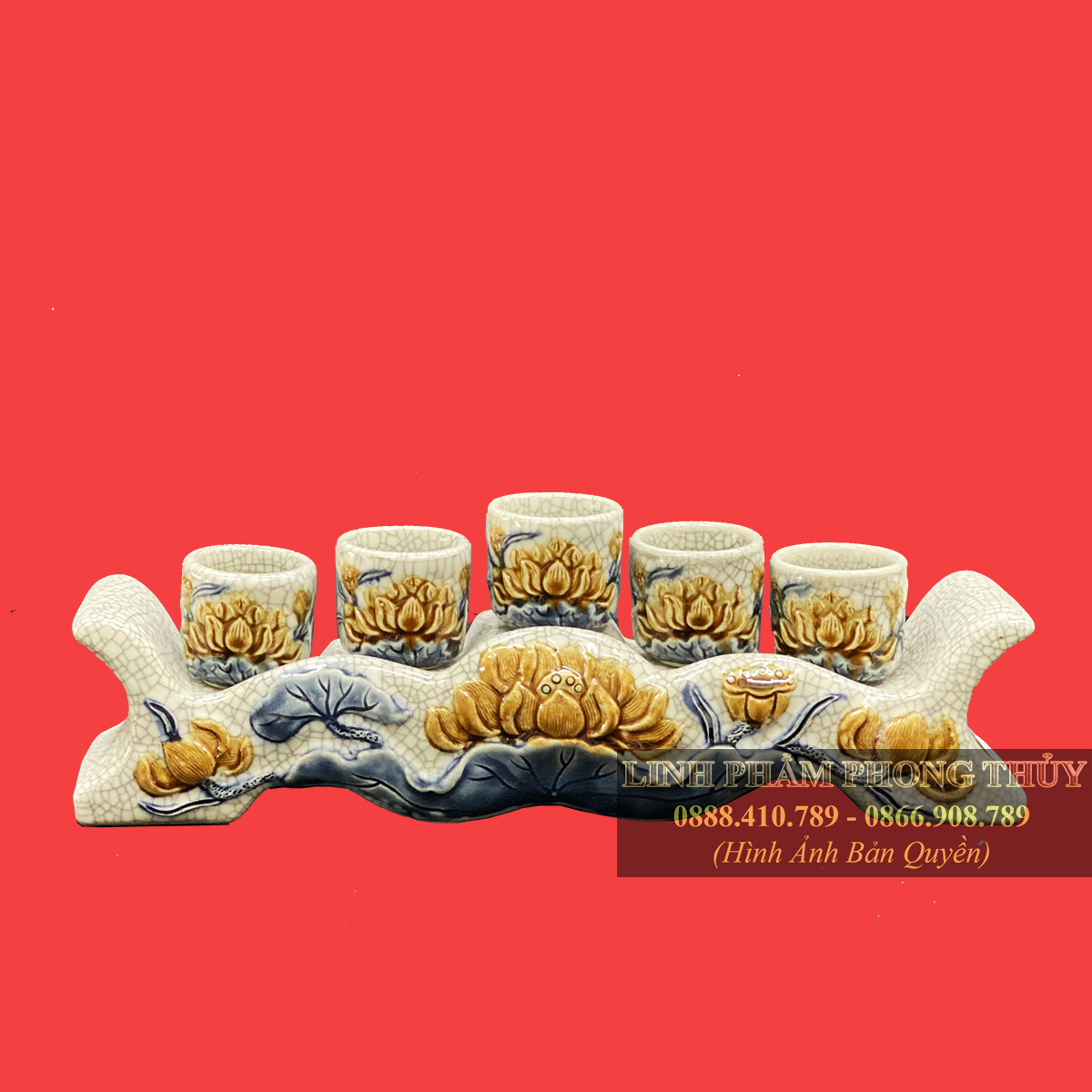 Cùng với bát hương, lọ hoa, ống hương,… kỷ ngai 5 chén vẽ sen men rạn cũng là một trong những đồ thờ cúng góp phần toát lên vẻ đẹp uy nghi, bề thế, sang trọng cho không gian thờ cúng của người Việt Nam.