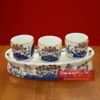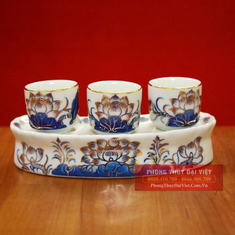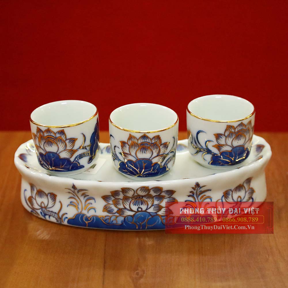 Bộ kỷ ngai 3 chén cong men ngọc vẽ vàng 24k