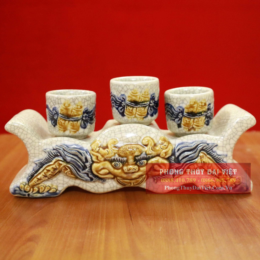 Bộ kỷ ngai 3 chén rồng men rạn đắp nổi Bát tràng